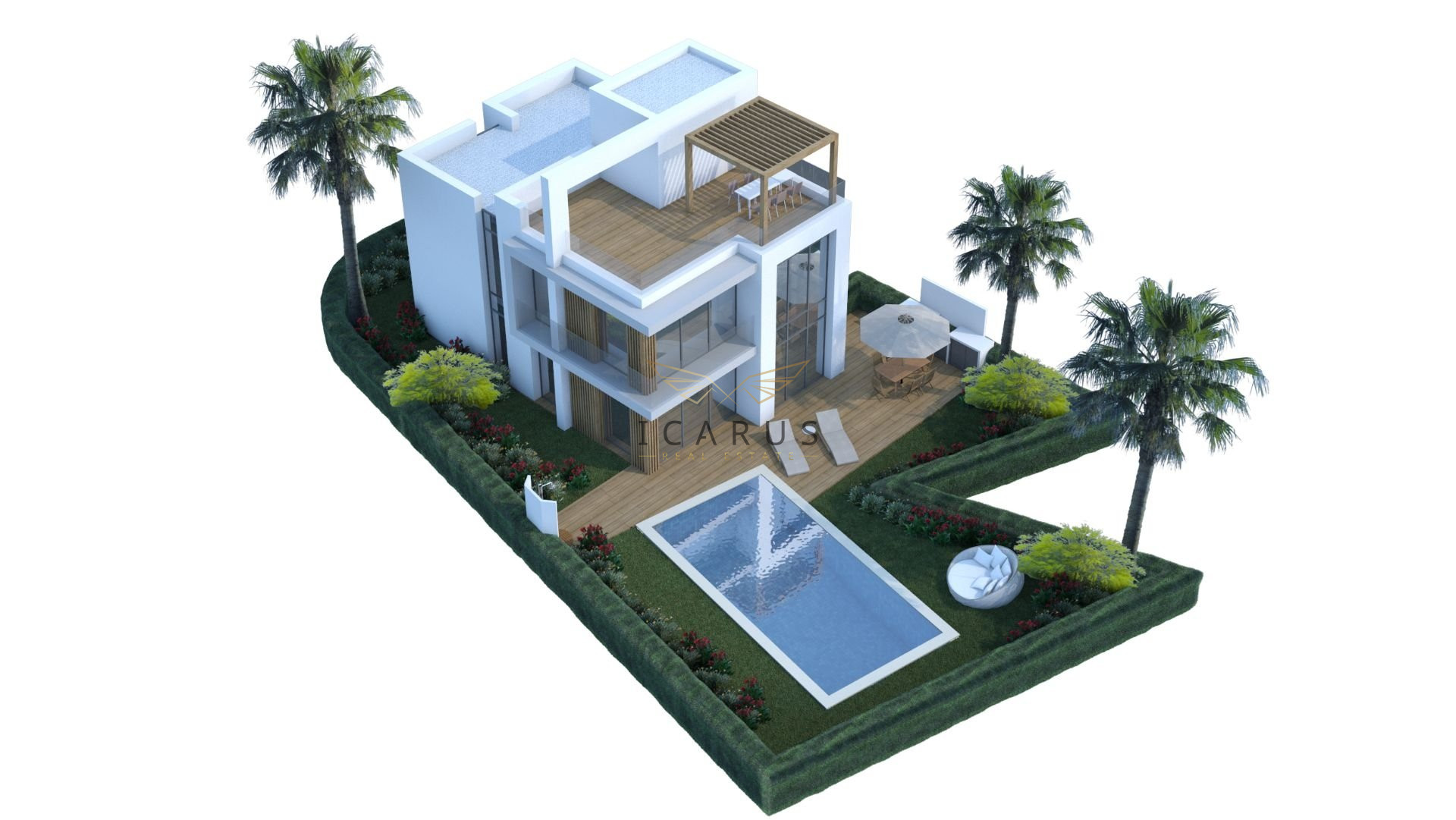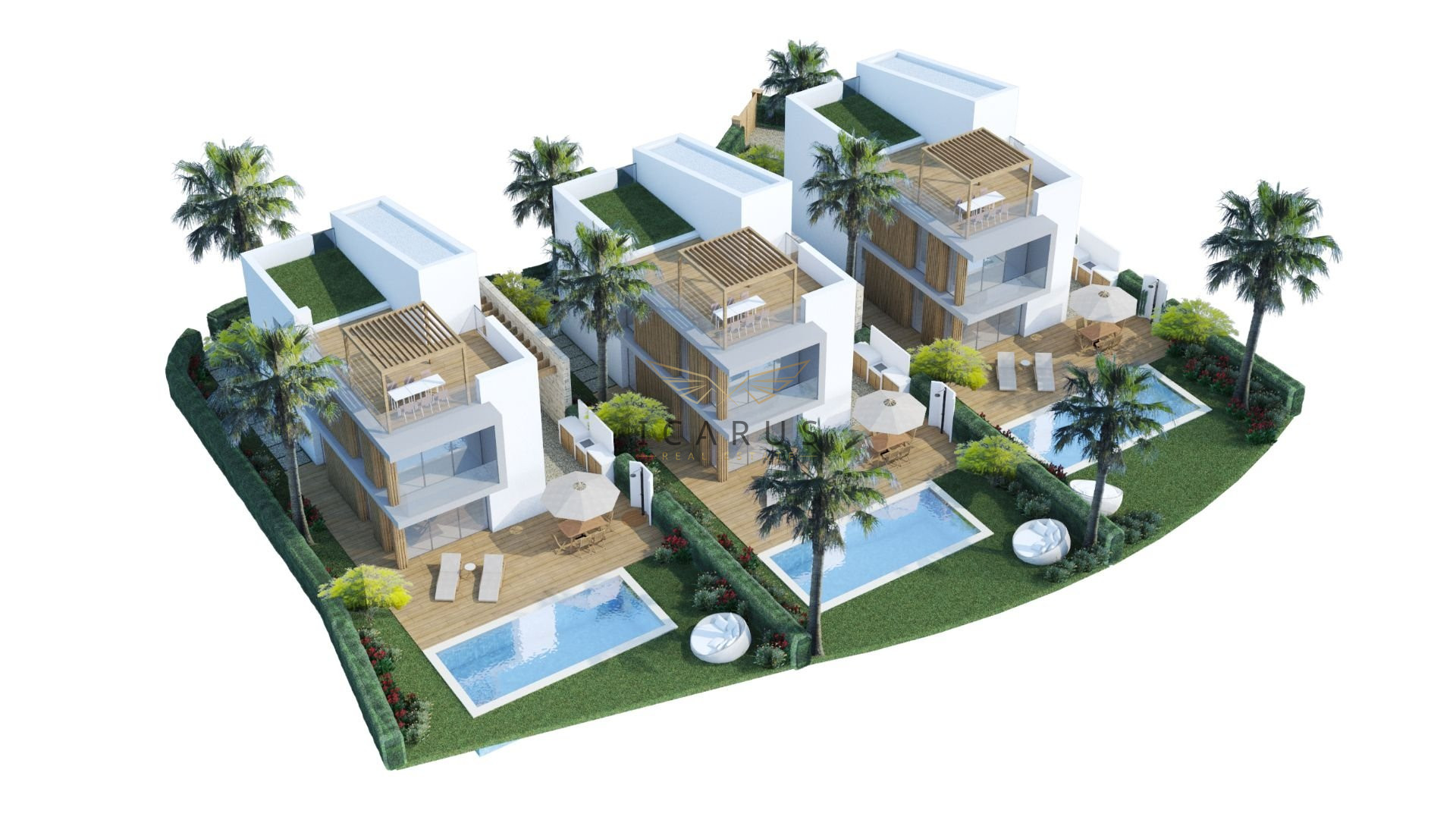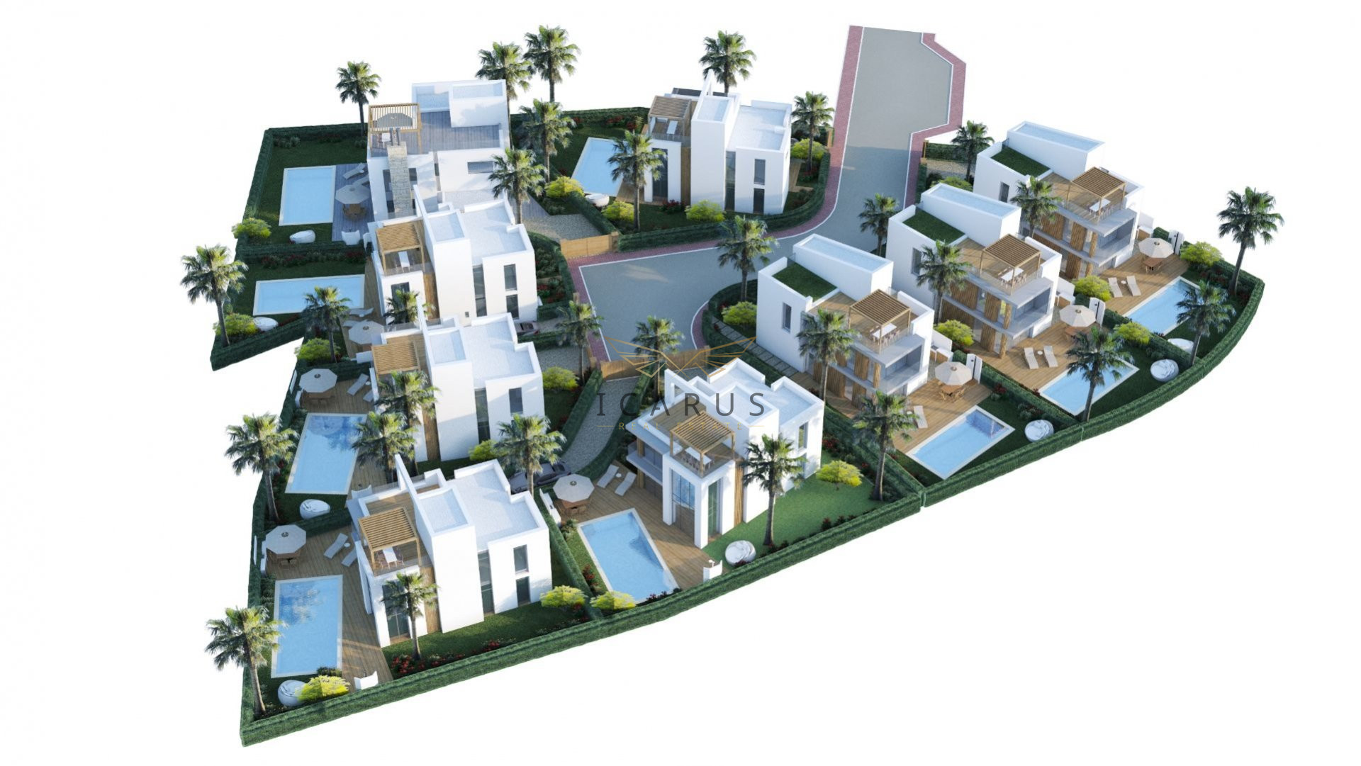 | Reference | Type | Floors | Parking spaces | Bedrooms | Bathrooms | Basement | Pool | Covered m2 | Covered veranda m2 | Covered parking m2 | Roof garden m2 | Plot m2 | VAT | Price | |