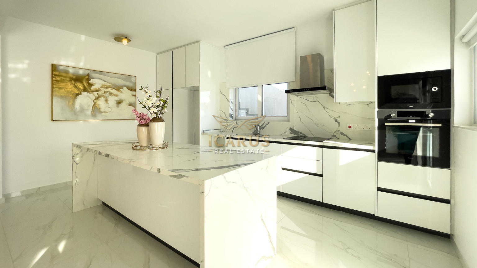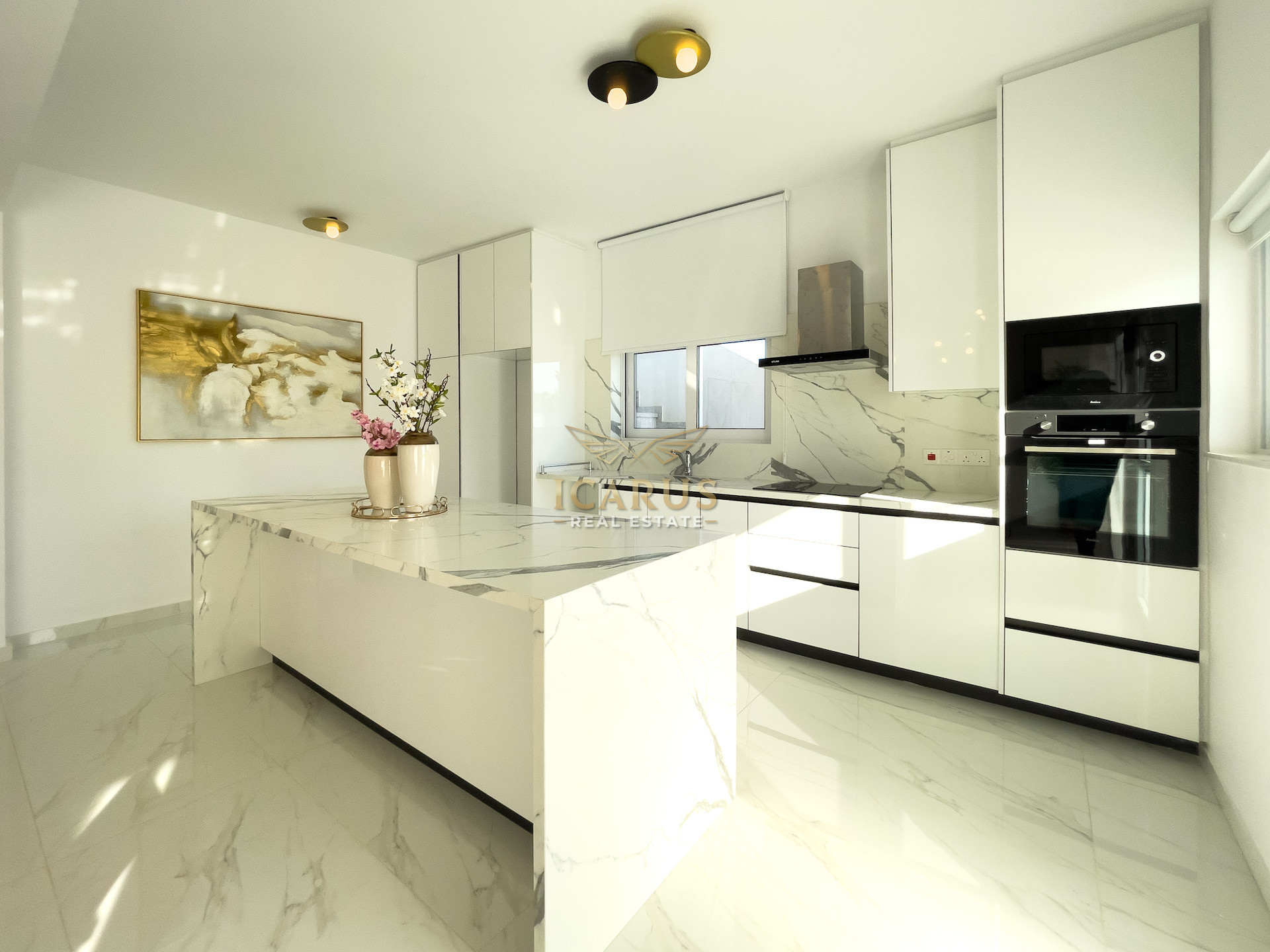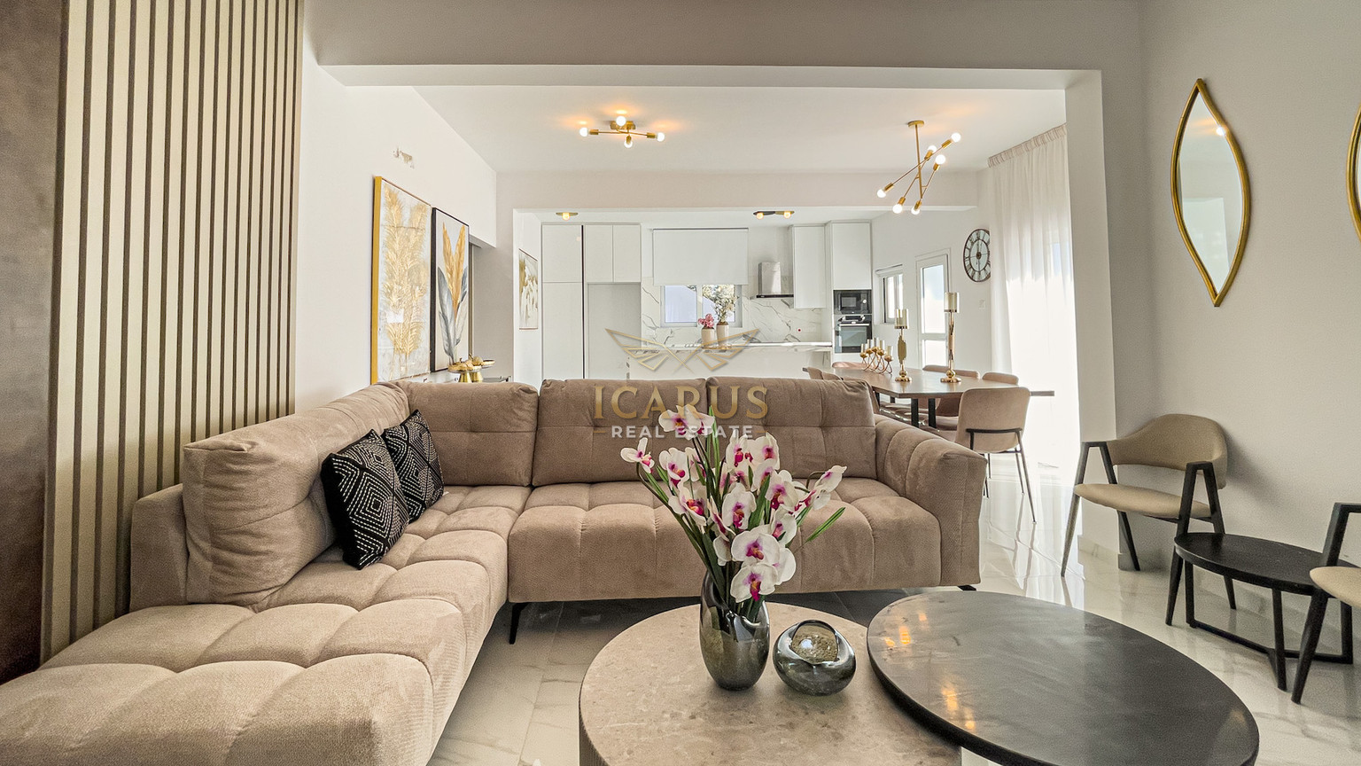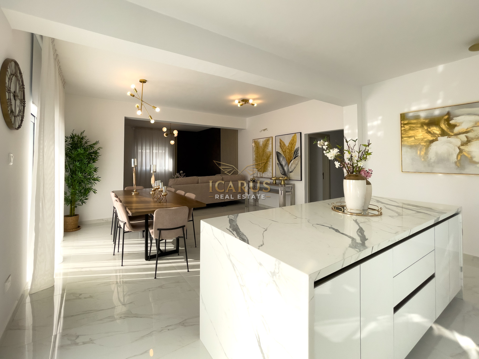 This beautifully designed ground floor house offers comfort, space, and modern living just minutes from the heart of Paralimni. Featuring an open-plan layout, it includes a spacious living area, a modern kitchen with an island and ample counter space, and a dining area perfect for family gatherings.