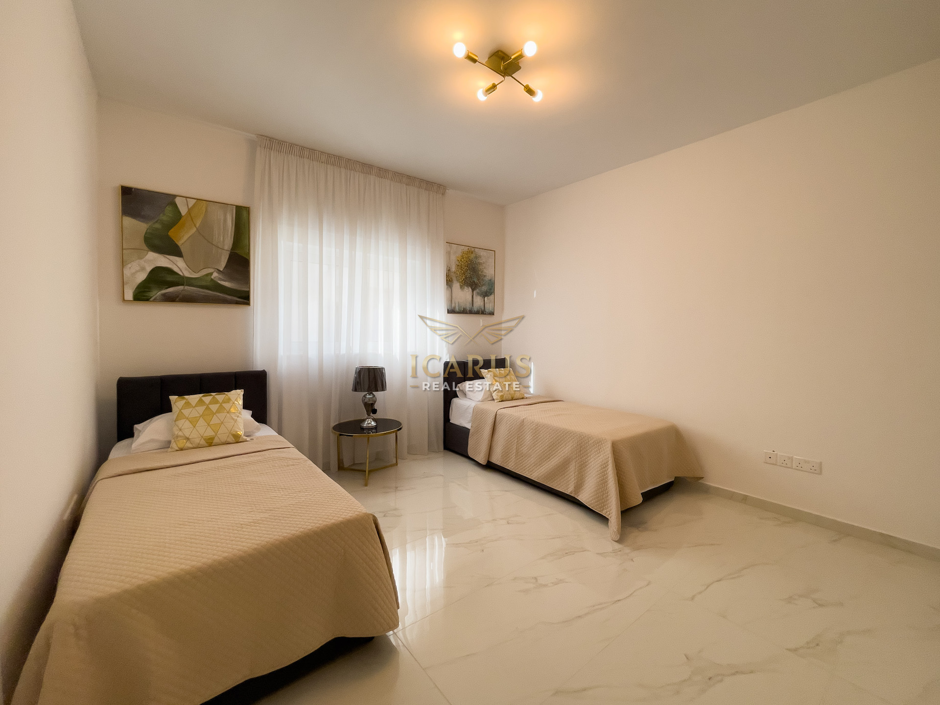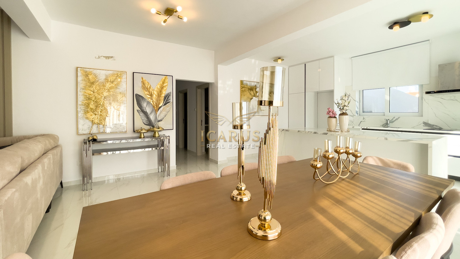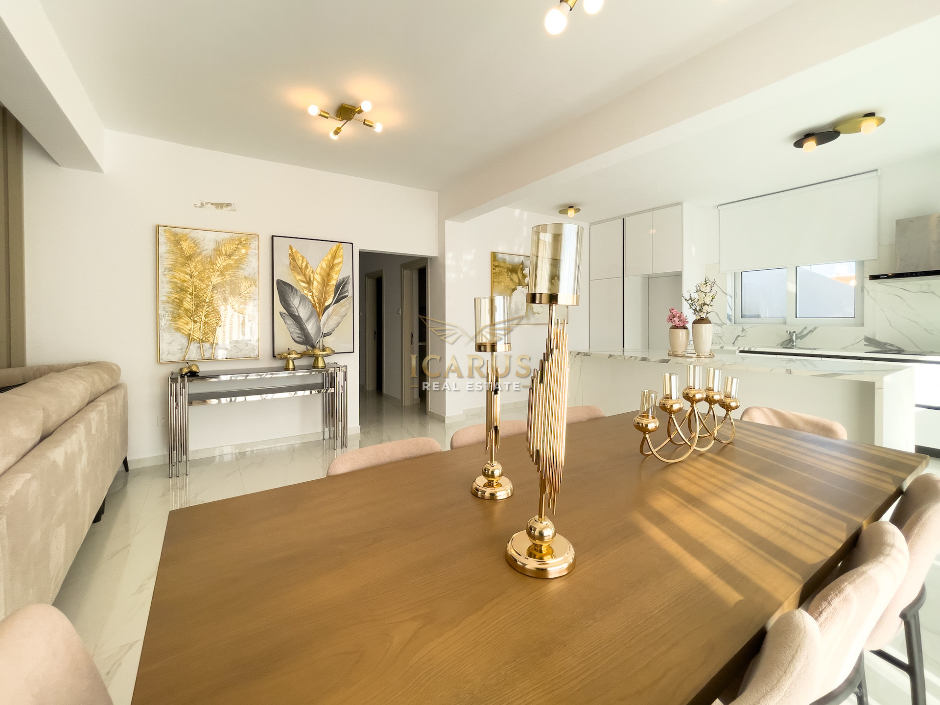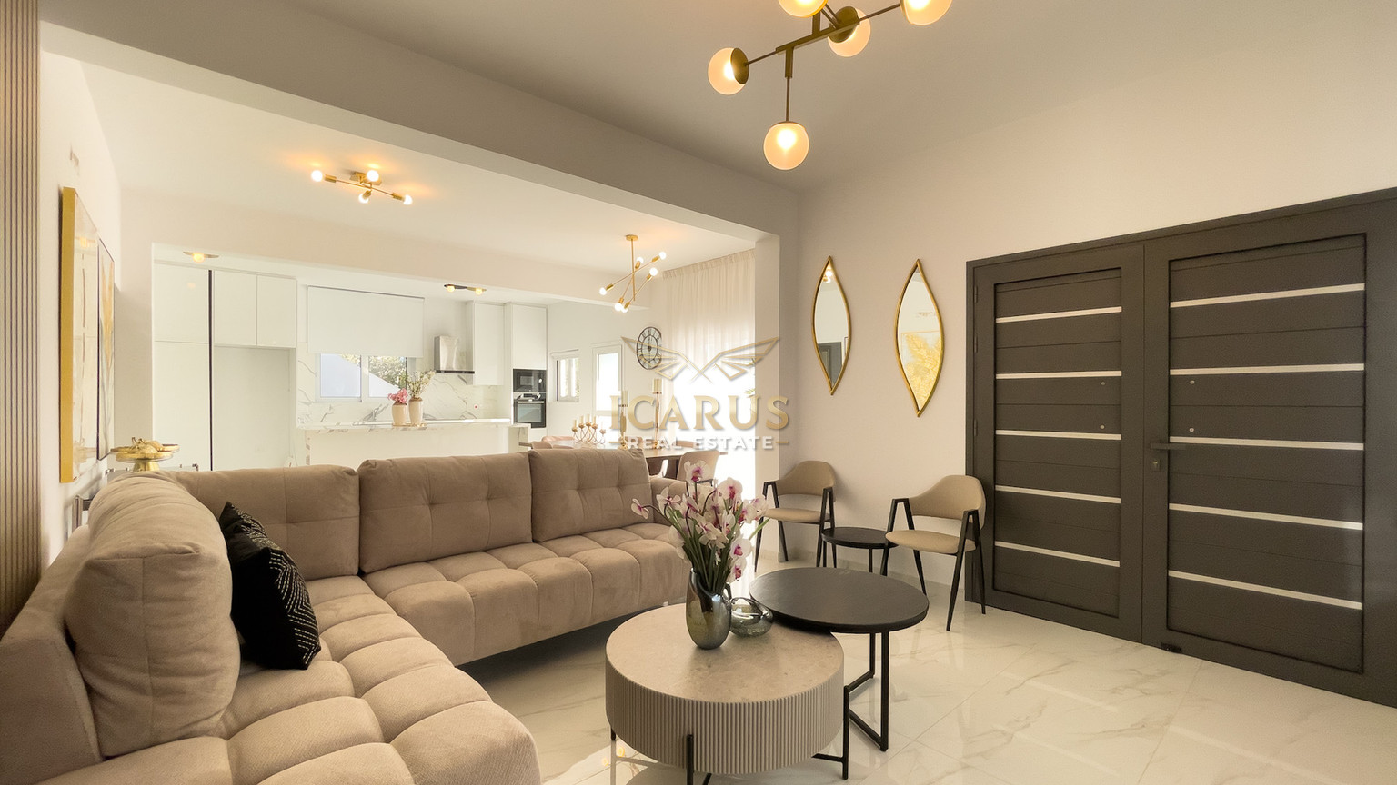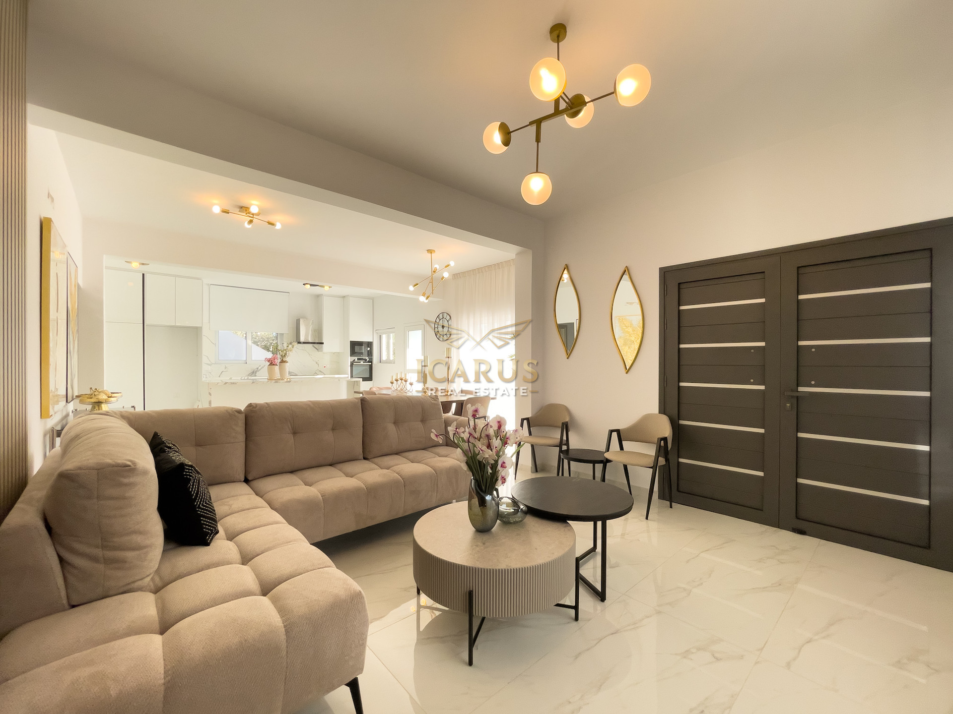 This beautifully designed ground floor house offers comfort, space, and modern living just minutes from the heart of Paralimni. Featuring an open-plan layout, it includes a spacious living area, a modern kitchen with an island and ample counter space, and a dining area perfect for family gatherings.