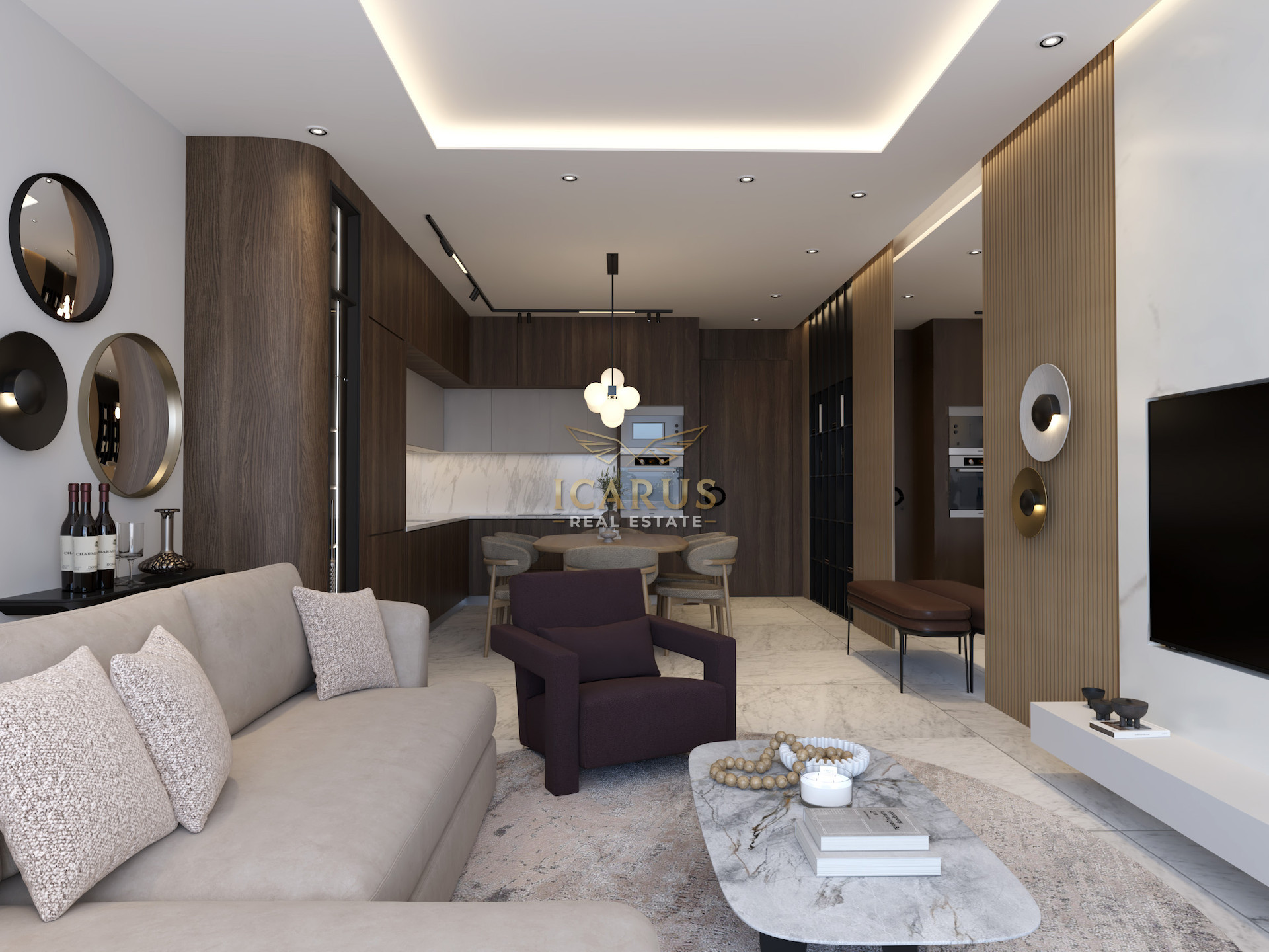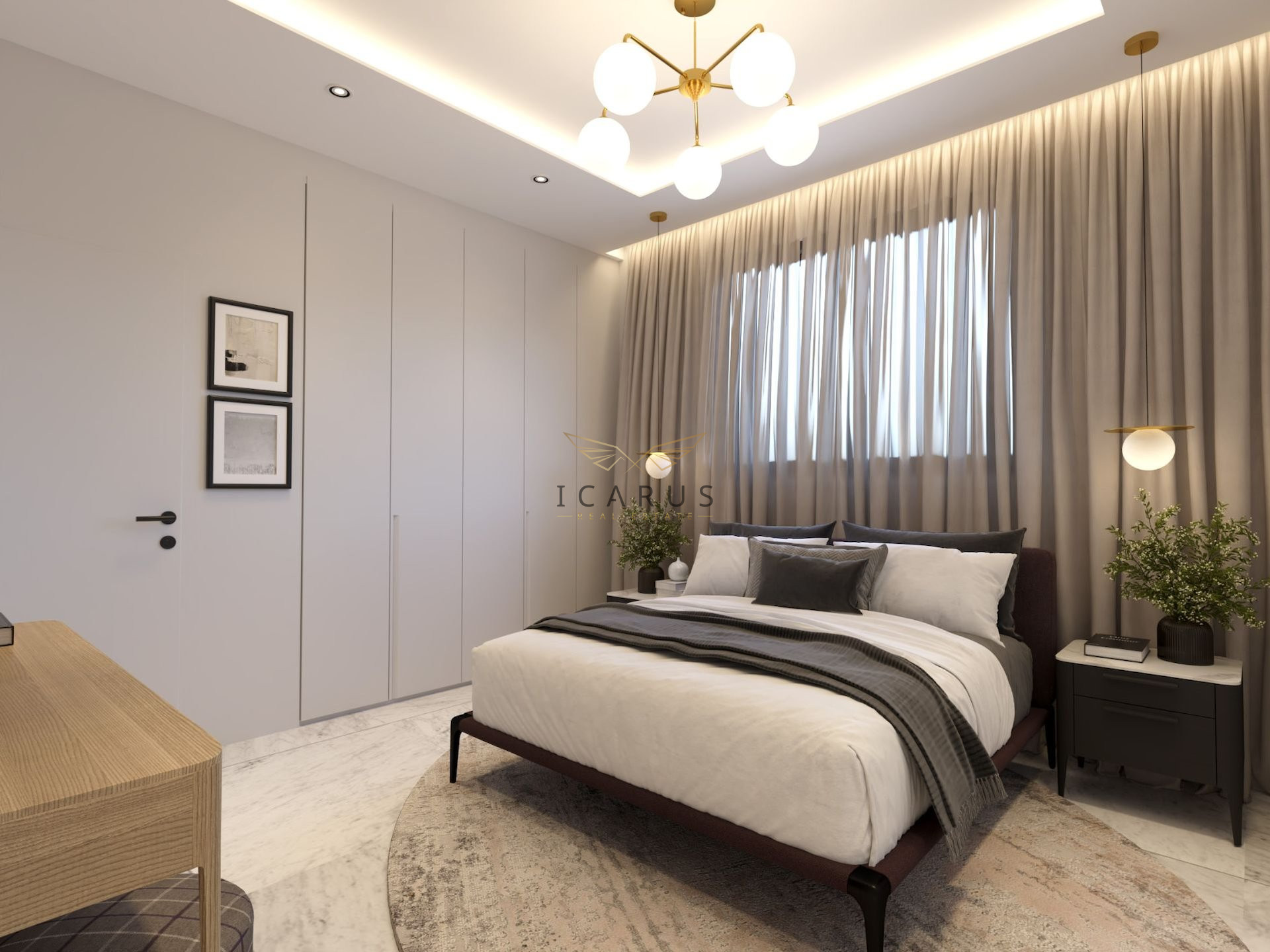 The complex features a communal overflow pool, state-of-the-art gym, individual storage rooms, and advanced security systems. Ideally located, it offers easy access to amenities, with Paralimni center just 7 minutes away and sandy beaches nearby.