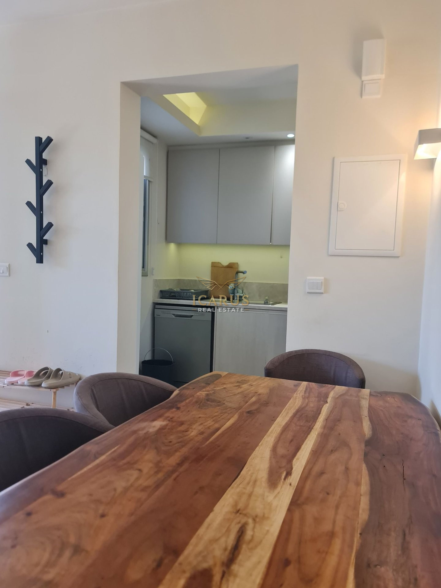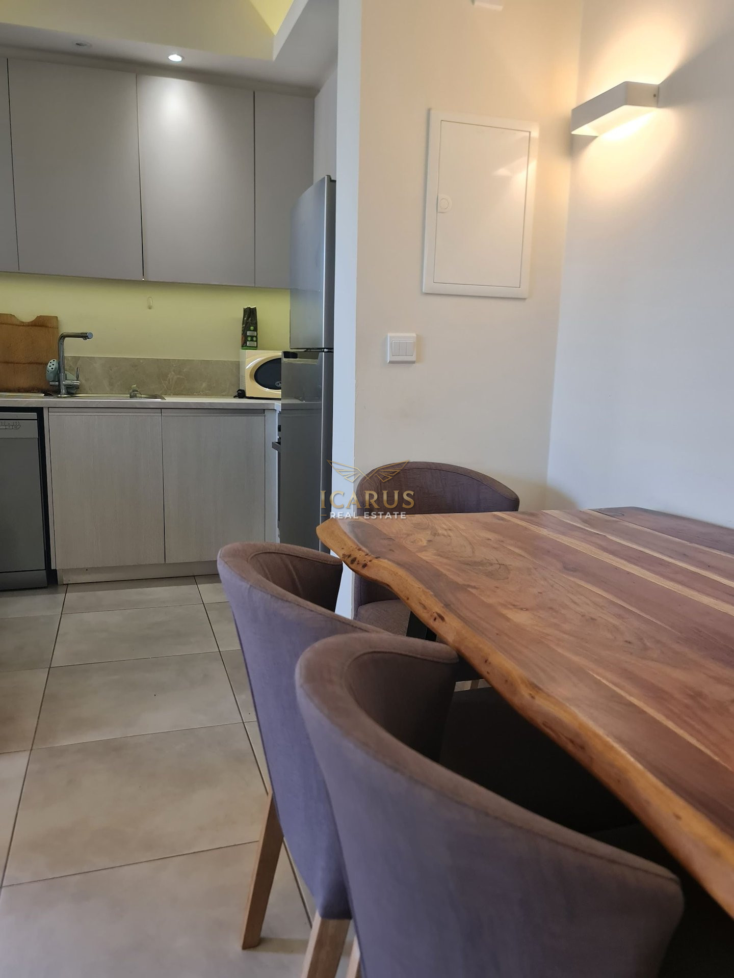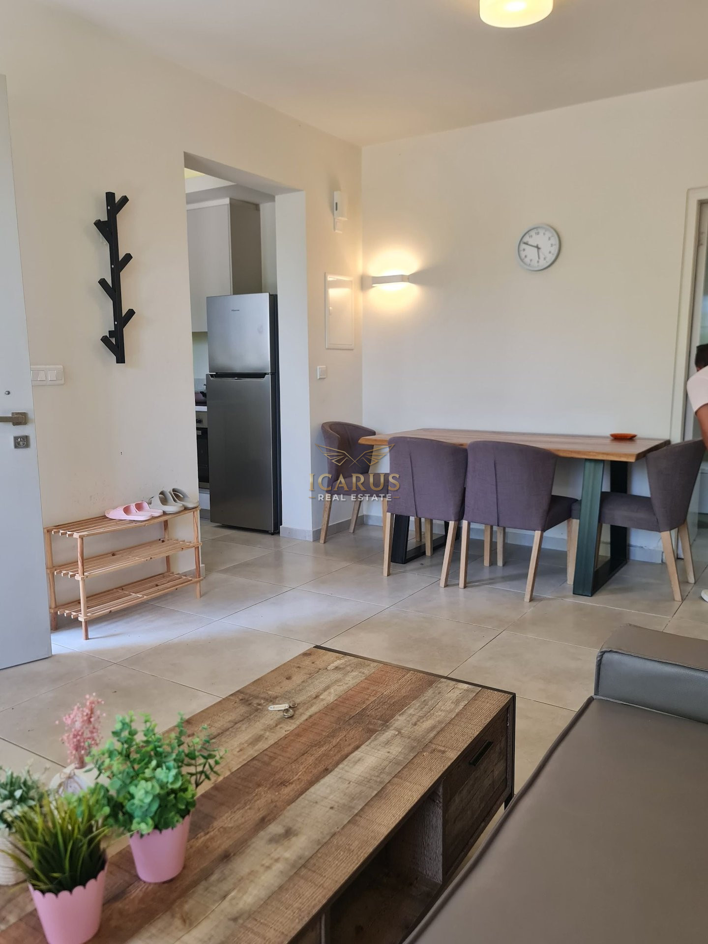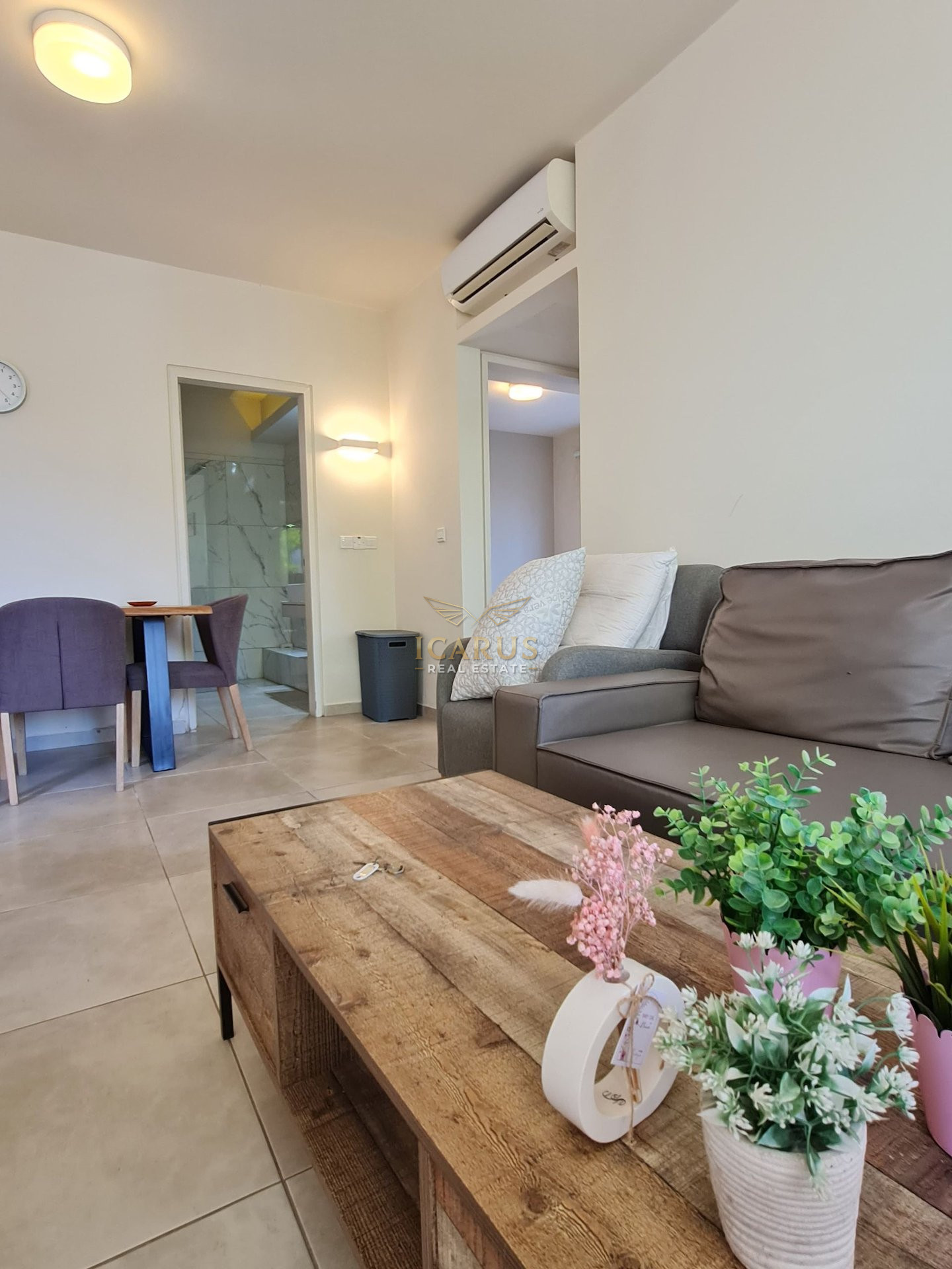 Step inside to a bright and airy interior featuring a smart open-plan design. The space integrates a welcoming living room, a dining area, and a functional kitchen, creating a harmonious living environment. Two generously sized bedrooms and a modern bathroom complete the layout, offering comfort and practicality in equal measure. The apartment is impeccably maintained and ready for immediate occupancy.