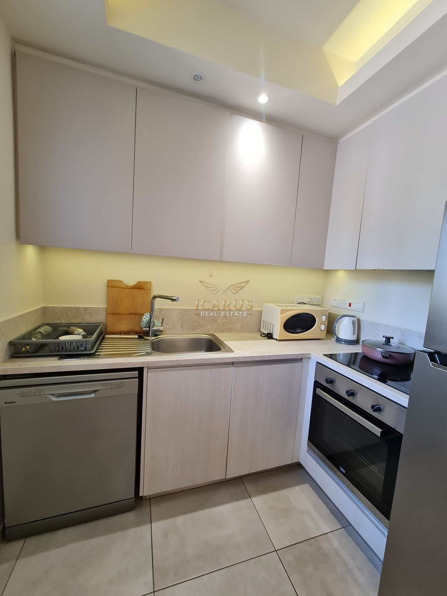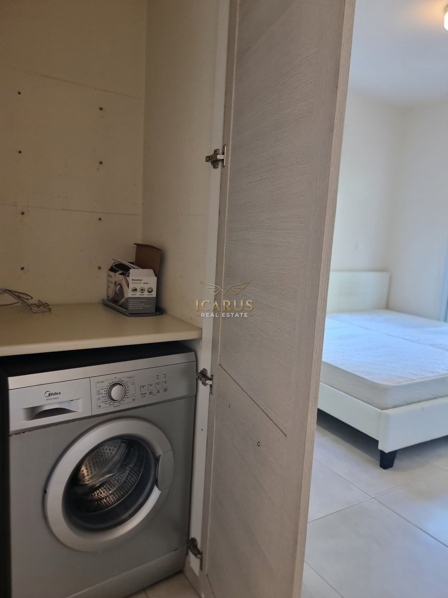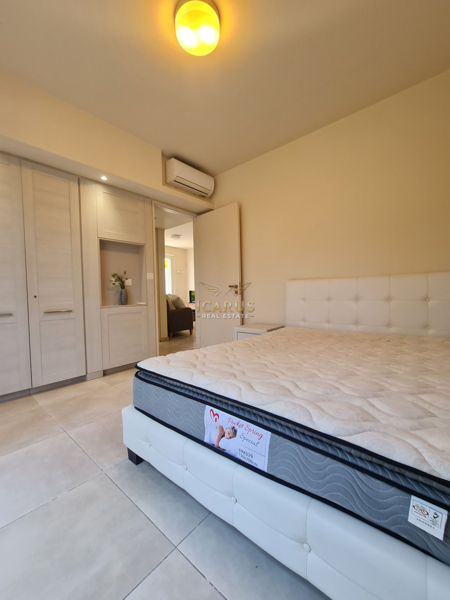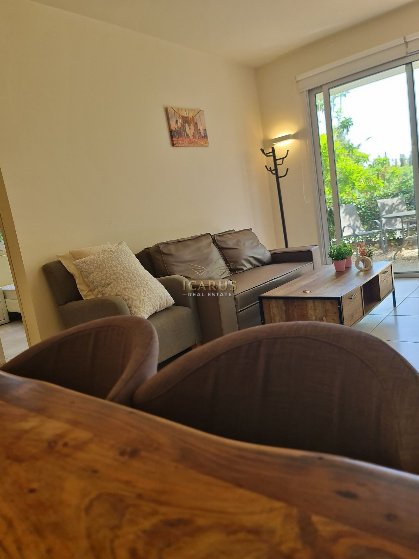 Step inside to a bright and airy interior featuring a smart open-plan design. The space integrates a welcoming living room, a dining area, and a functional kitchen, creating a harmonious living environment. Two generously sized bedrooms and a modern bathroom complete the layout, offering comfort and practicality in equal measure. The apartment is impeccably maintained and ready for immediate occupancy.