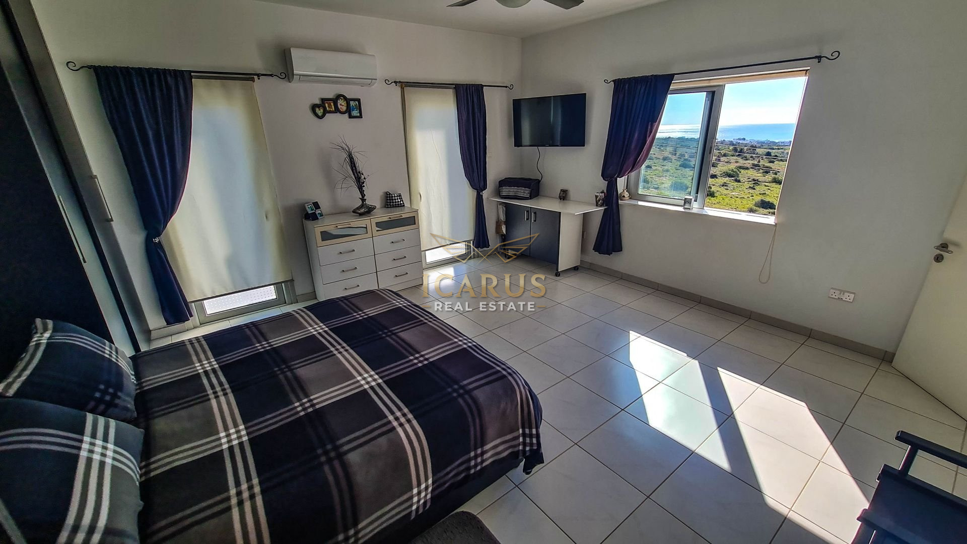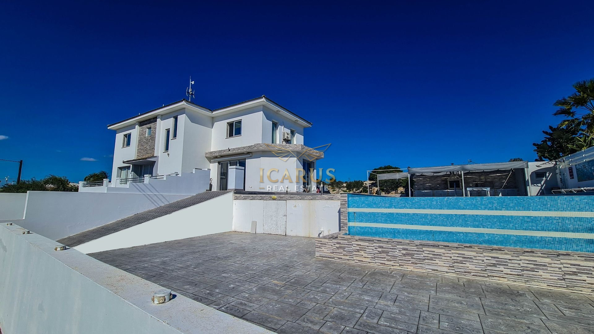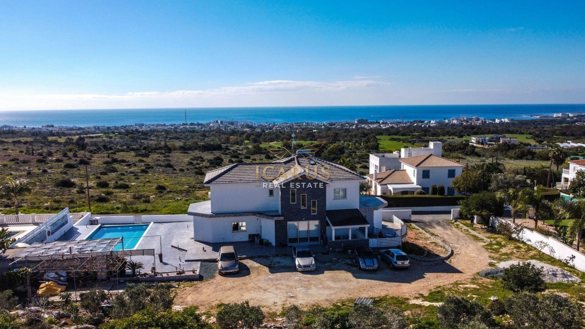 Situated in one of the most craved areas – Kokkinos Gkremos – just minutes away from Ayia Napa, this spectacular detached villa offers a truly breathtaking view. Spread in a massive elevated plot of 1200 m² that is attached to Government Land, the property overlooks the mesmerizing Mediterranean Sea and offers a super-spacious living space. An added feature is its unique privacy as it is nestled in an elite area with a few villas.