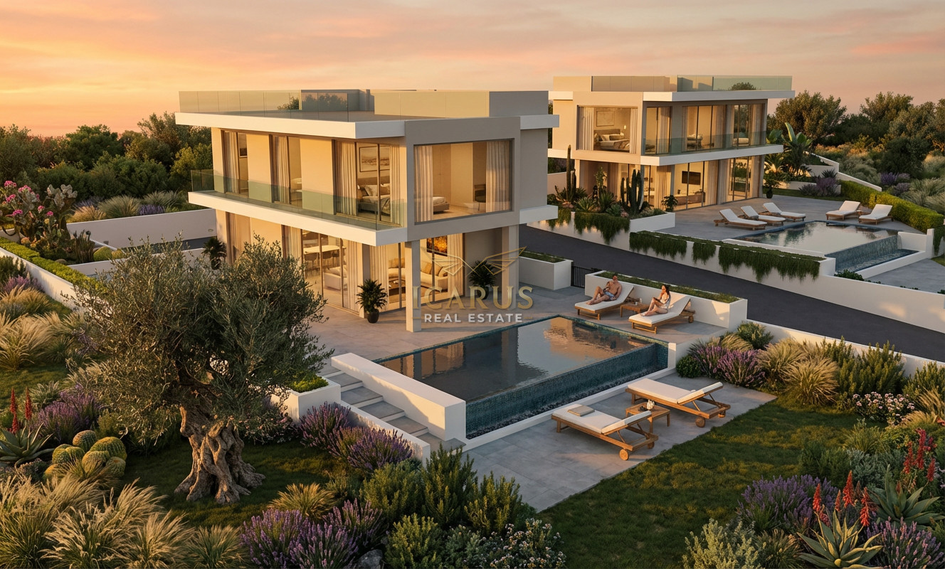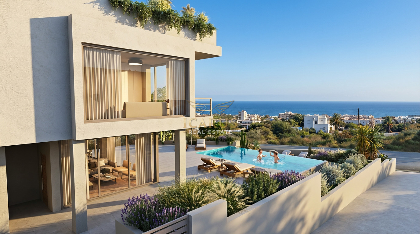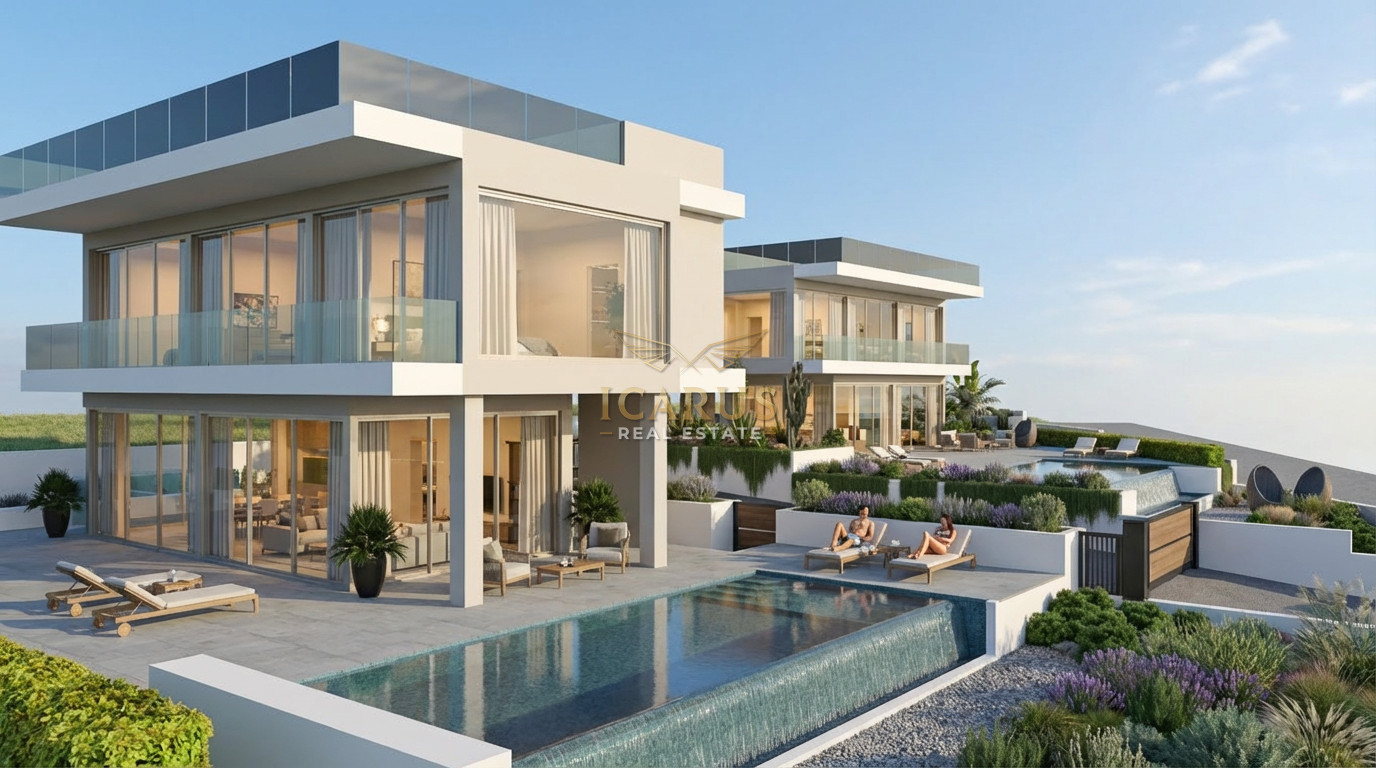 Nestled in the tranquil hills above Protaras, this exclusive luxury villa is a masterpiece of contemporary design and sustainable living. Set within a private development, the residence blends energy-efficient features with elegant modern finishes, all while offering breathtaking views of the shimmering Mediterranean Sea and the unspoiled natural landscape.