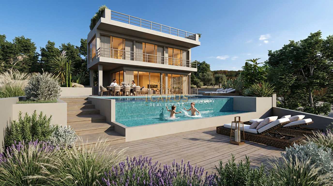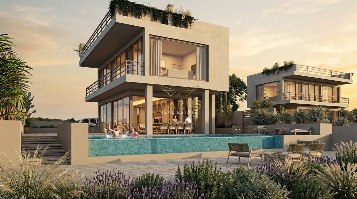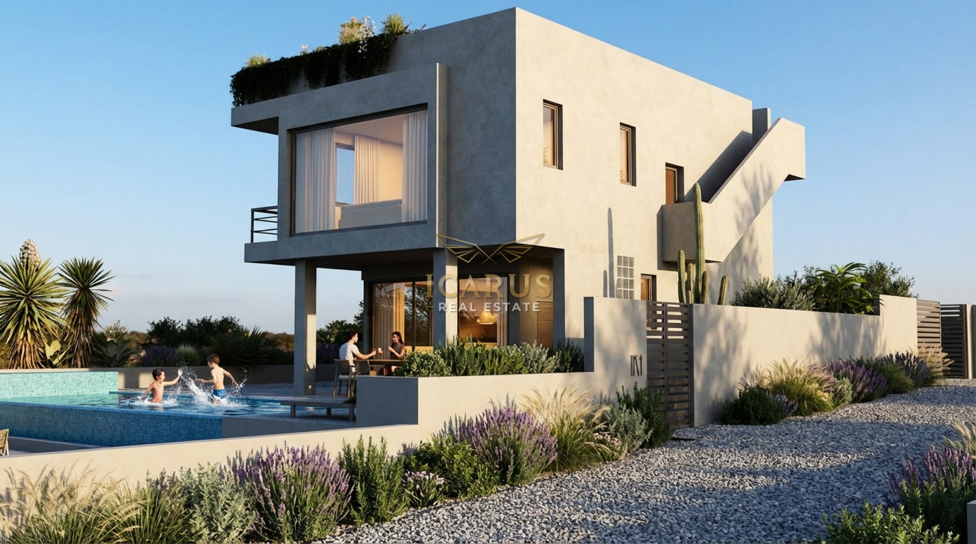 Nestled in the tranquil hills above Protaras, this exclusive luxury villa is a masterpiece of contemporary design and sustainable living. Set within a private development, the residence blends energy-efficient features with elegant modern finishes, all while offering breathtaking views of the shimmering Mediterranean Sea and the unspoiled natural landscape.