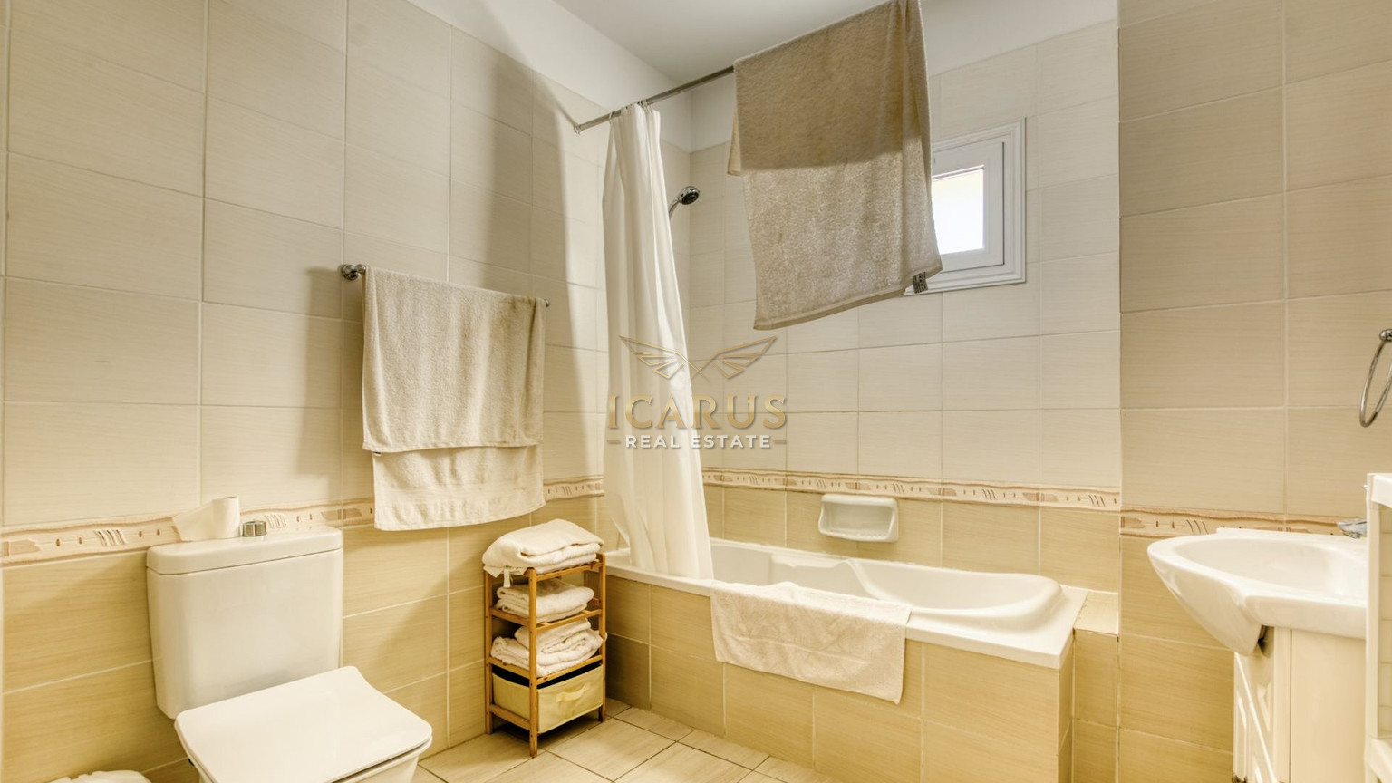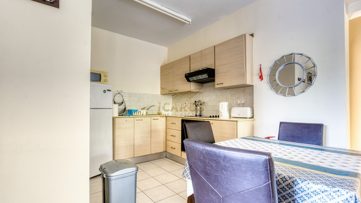 Upon entering the apartment, an open-plan design emerges. A bright kitchen links smoothly to a comfortable dining/living room space. The large double-glazed sliding doors grant access to a spacious veranda which can be turned into a refreshing outdoor seating area to unwind and relax.
