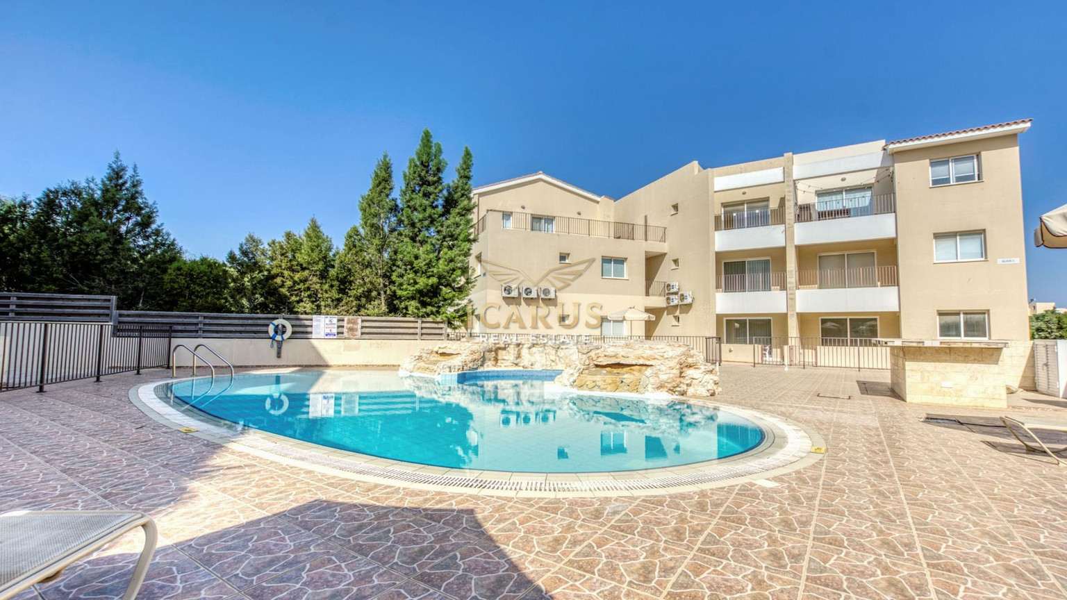 Adjacent to the open-plan living area there are two bright and spacious bedrooms that will be a peaceful haven to unwind. The property features a covered parking for additional convenience and invites you to cool down on hot summer days in the communal pool.