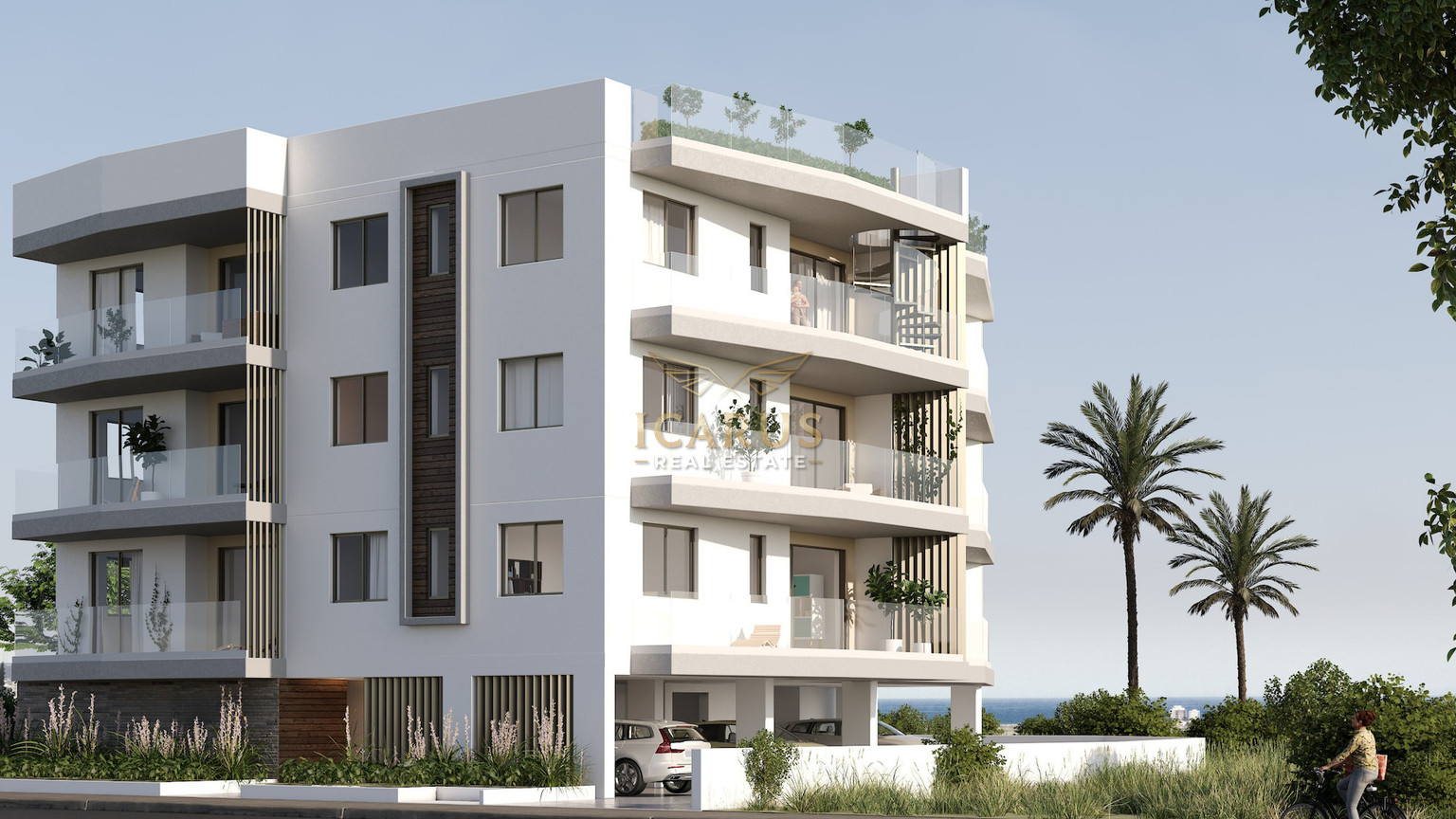 Nestled in a quiet and elevated area in a sought after area in Deryneia, this two-bedroom apartment offers not only magnificent and unobstructed sea views of the Mediterranean Sea, but also calmness and relaxation. Its energy efficiency is of class A, since close attention to details was paid, the highest-quality materials were meticulously chosen, and the interior and exterior design aesthetics were exceptional. Worth mentioning is the fact that every apartment of the complex is built on a different corner of the building offering privacy and quiet.