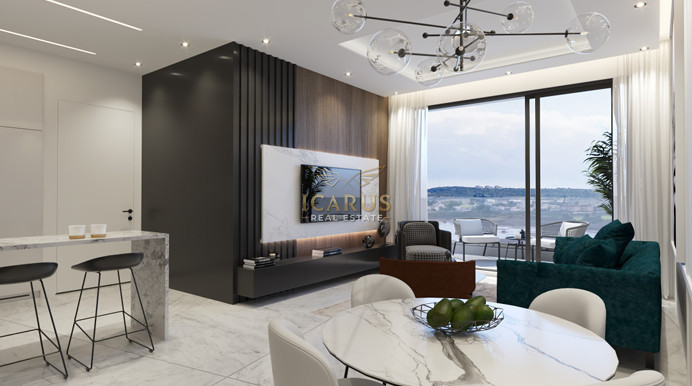 Discover this beautifully designed two-bedroom apartment, ideally located in a prime area of Sotira—just minutes from the town center and with easy access to main roads. Situated on the first floor, the apartment features a bright open-plan layout that seamlessly blends a modern kitchen, dining, and living area.