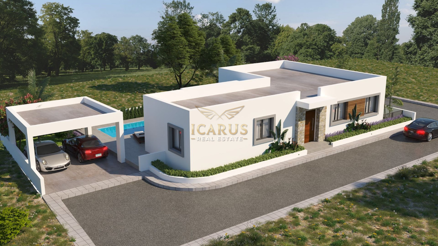 This bungalow is located in the peaceful village of Frenaros, offers a perfect combination of contemporary design and energy efficiency, boasting an impressive A-rated energy performance. The spacious, open-plan living, kitchen, and dining area creates a welcoming and modern environment, ideal for both family gatherings and entertaining guests. With two beautifully designed bedrooms, the master suite includes an en-suite shower, while the second bedroom shares the family bathroom, both offering comfort and privacy.