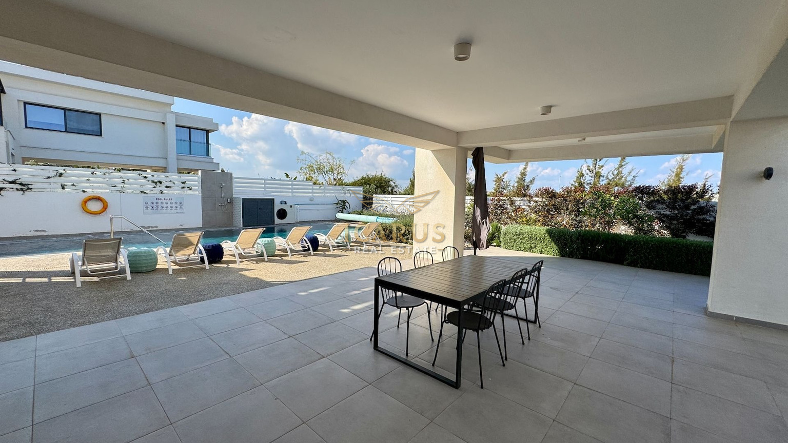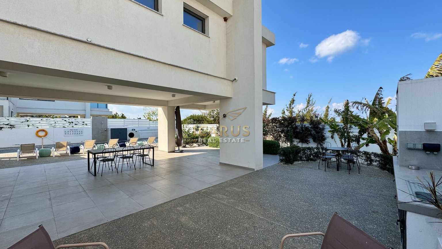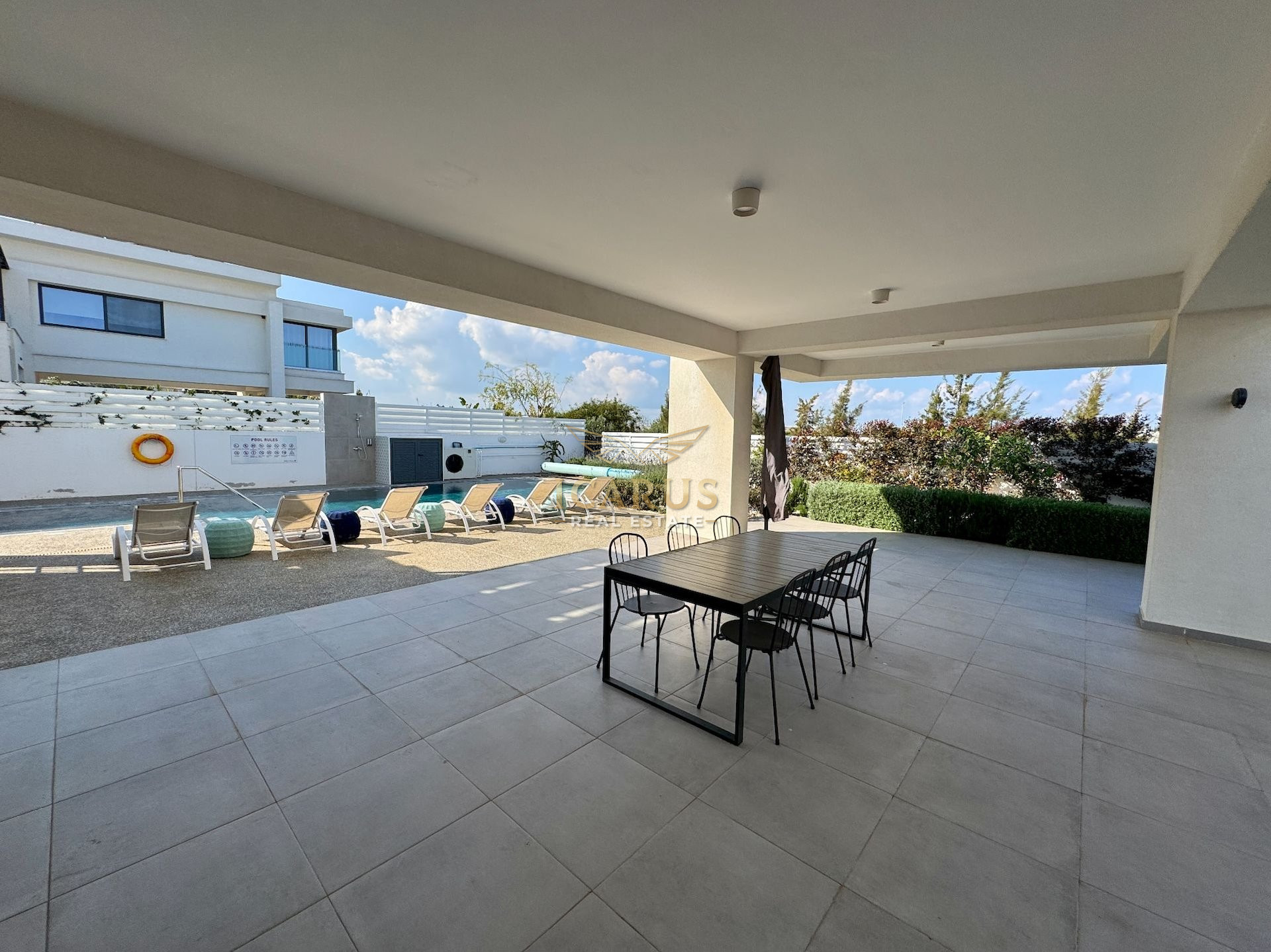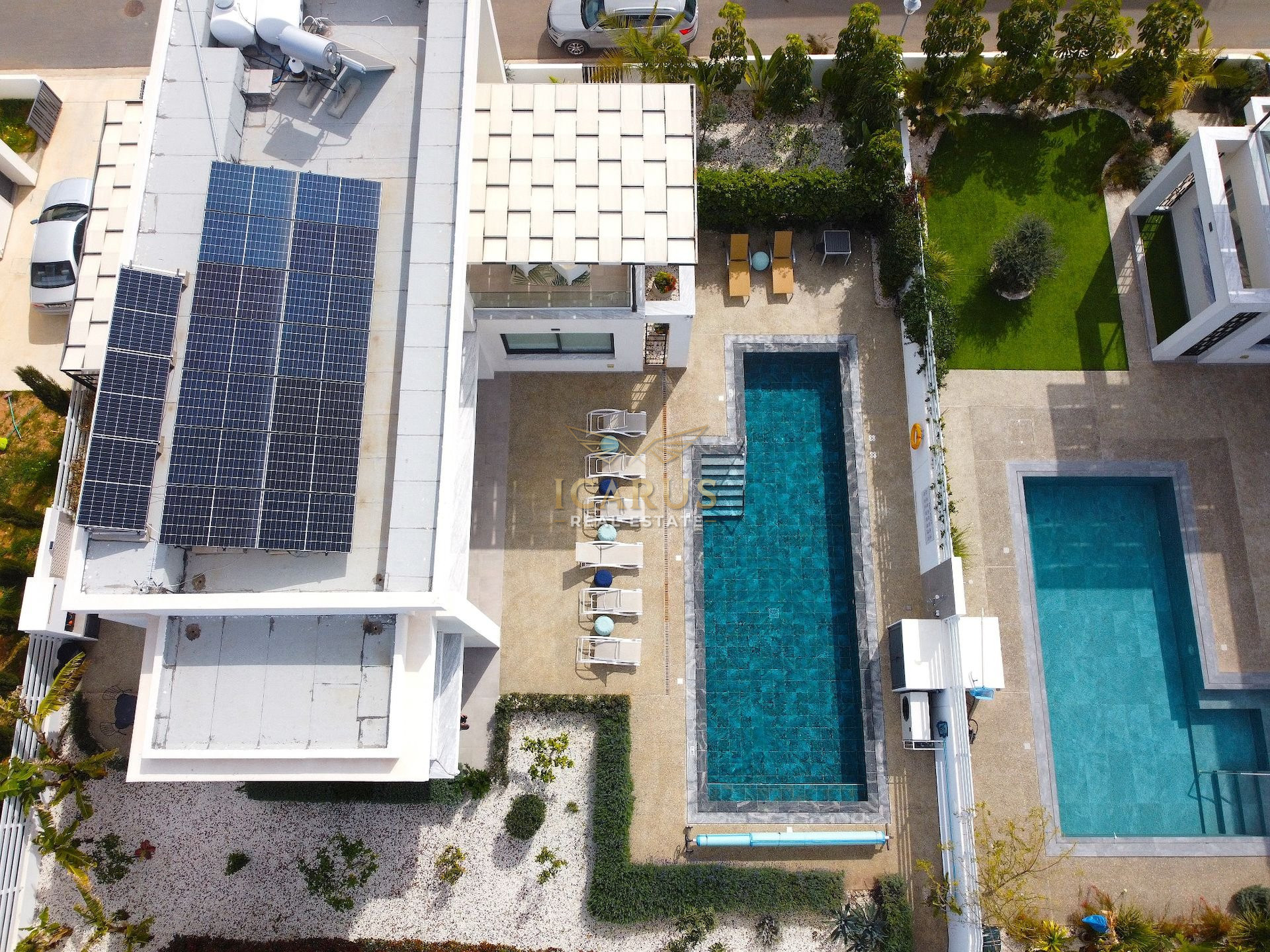 A distinct highlight is its seamless connection to a lush green area at the rear, providing a serene, private retreat. Designed with contemporary sophistication to complement the Mediterranean ambiance, this villa presents both immediate luxury and remarkable potential for further customization and growth.
