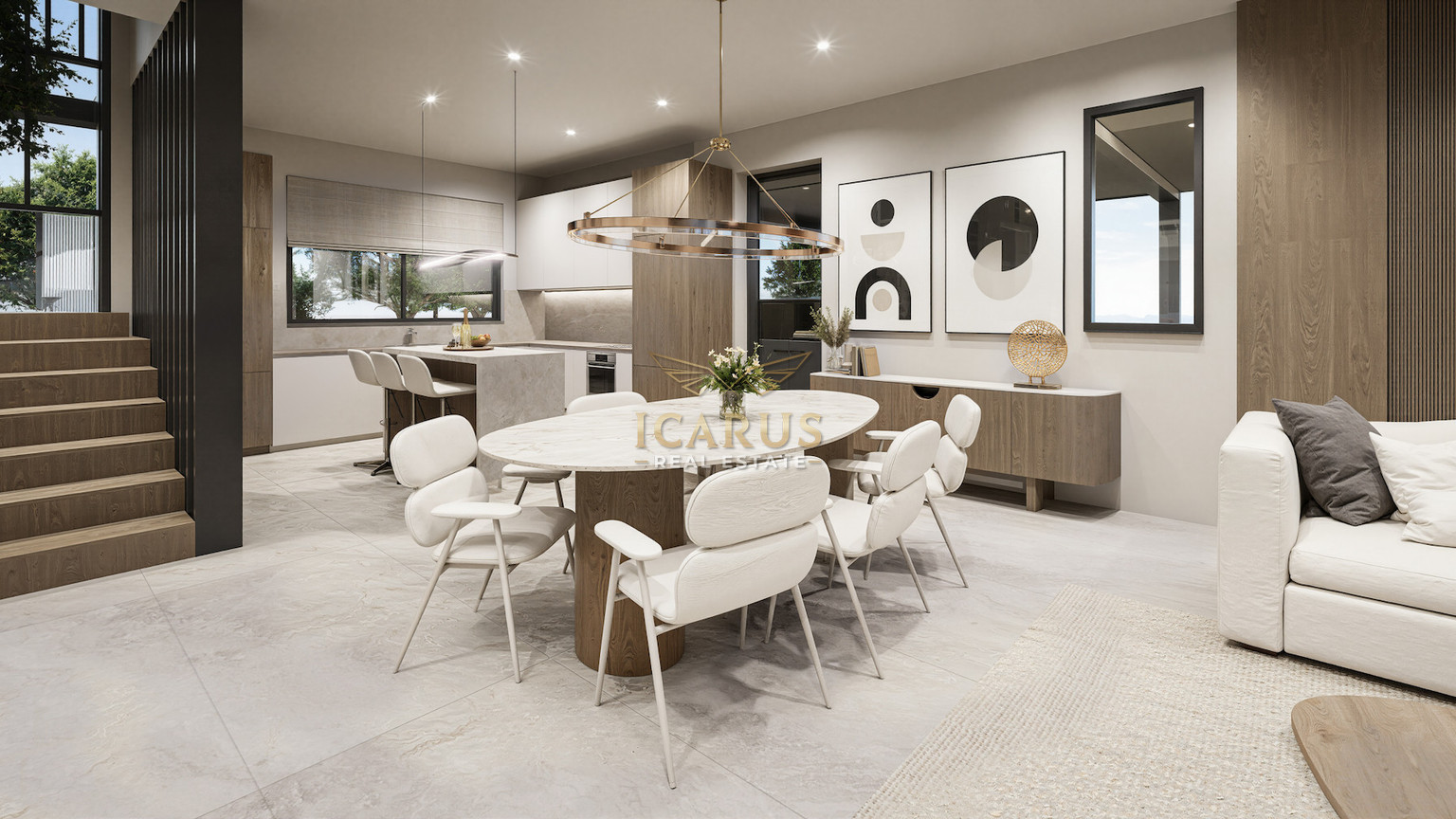 Upon entering, you are welcomed by a thoughtfully designed open-plan ground floor, where the living, dining, and kitchen areas flow seamlessly together. Abundant natural light fills the space through double-glazed thermal windows, creating a bright and inviting atmosphere throughout the day. A guest WC on this level adds an extra layer of comfort and practicality.