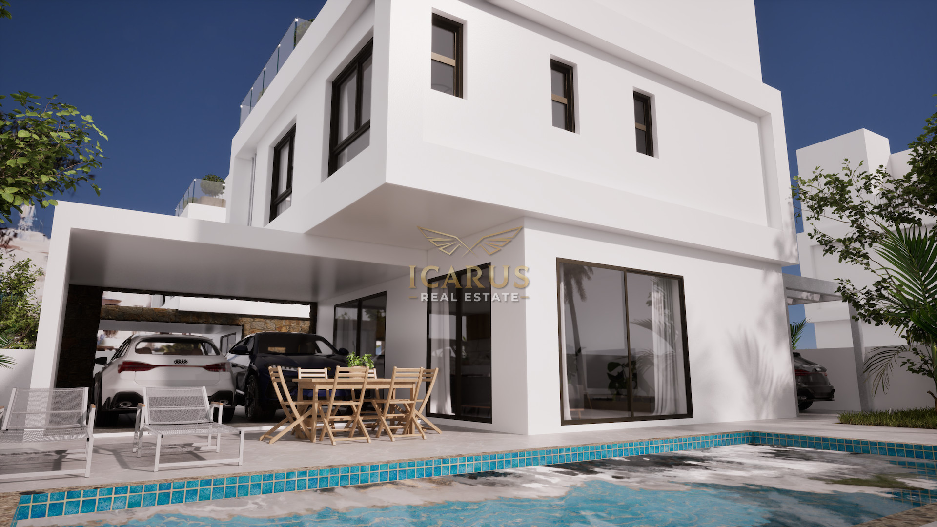 The villa also boasts an impressive roof garden where a fourth bedroom with en-suite facilities is located. This level features a generous veranda — the perfect place to relax while enjoying panoramic views and breathtaking sunsets, or to entertain family and friends in a tranquil setting.