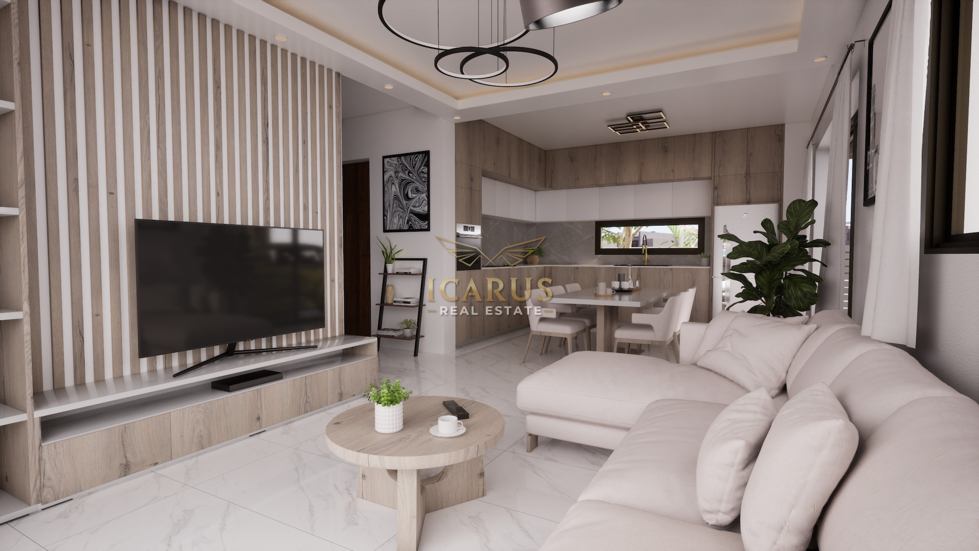 The ground floor welcomes you with a bright and spacious open-plan layout, seamlessly combining the kitchen, dining, and living areas to create a warm and inviting atmosphere. Large openings allow plenty of natural light to flow through the space. A guest WC is also conveniently located on this level.