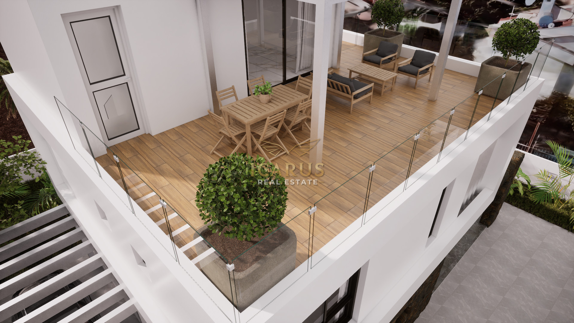 The villa also boasts an impressive roof garden where a fourth bedroom with en-suite facilities is located. This level features a generous veranda — the perfect place to relax while enjoying panoramic views and breathtaking sunsets, or to entertain family and friends in a tranquil setting.