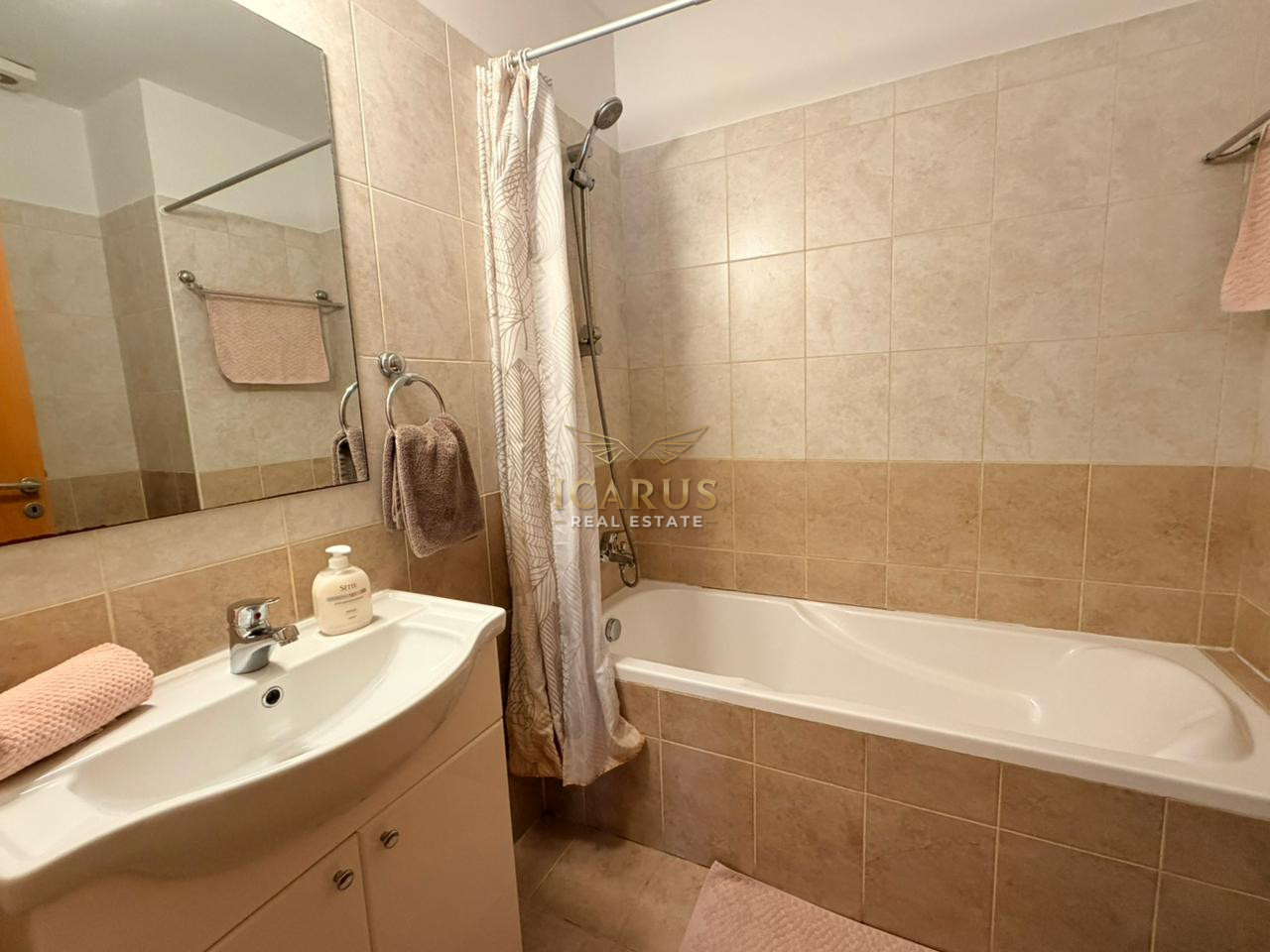 The apartment offers approximately 80 m² of covered internal space together with a 12 m² veranda, providing a comfortable outdoor space to enjoy the Mediterranean climate.