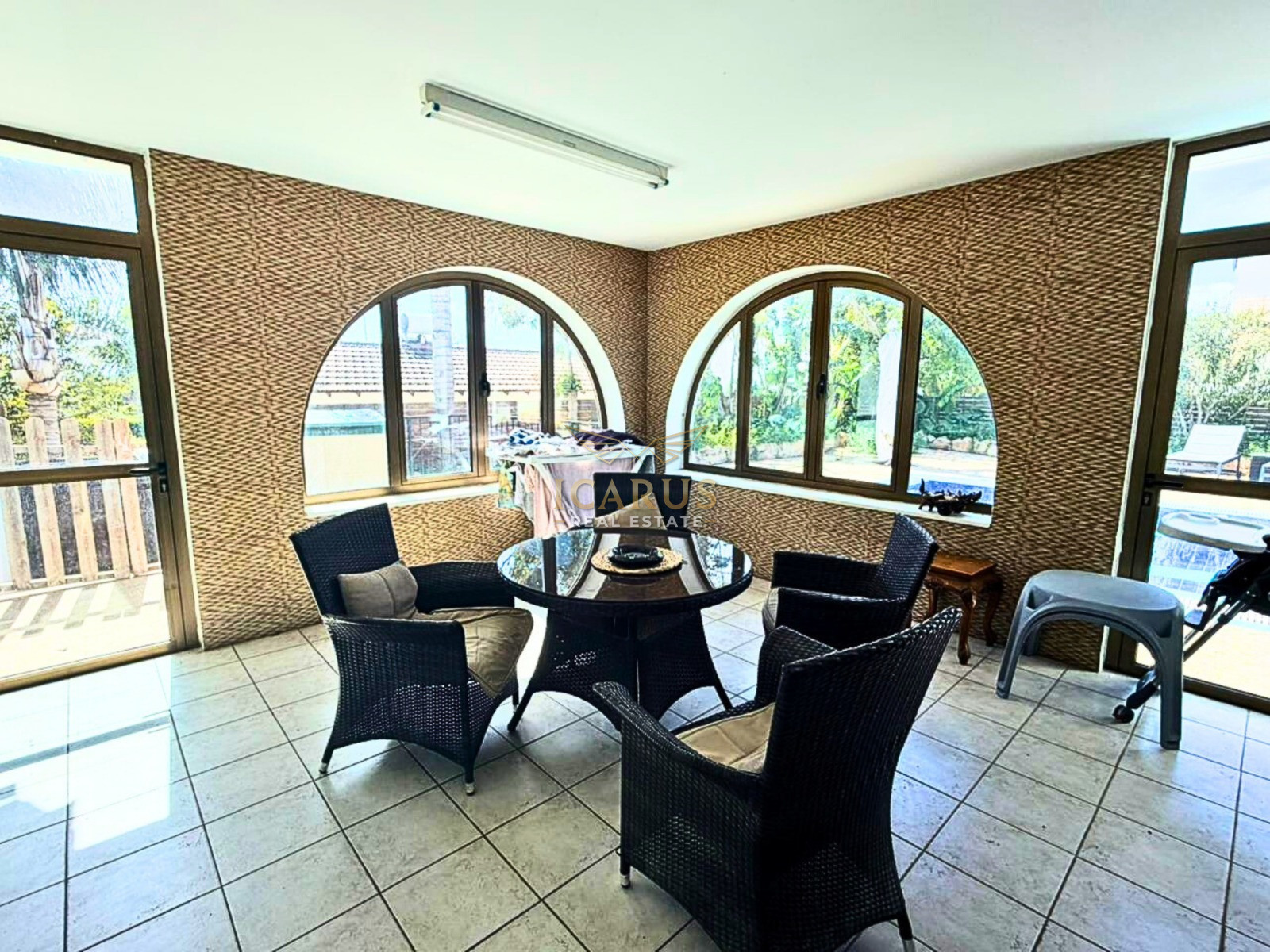 Outside, the property boasts a large private yard with a tiled overflow swimming pool, a beautifully landscaped garden, and a pergola-covered seating area where you can relax or entertain family and friends while enjoying the wonderful Mediterranean climate. A barbecue area further enhances the outdoor lifestyle this villa offers.