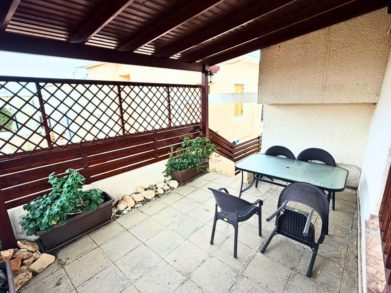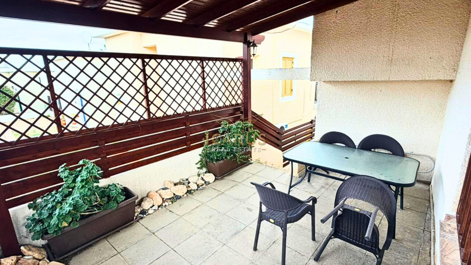 Step outside onto the private veranda, the perfect spot to sit back, relax, and enjoy beautiful sea views while embracing the warm Mediterranean climate. Additionally, the property includes an outdoor yard, which can easily be used as a sitting area, garden space, or for other practical uses.
