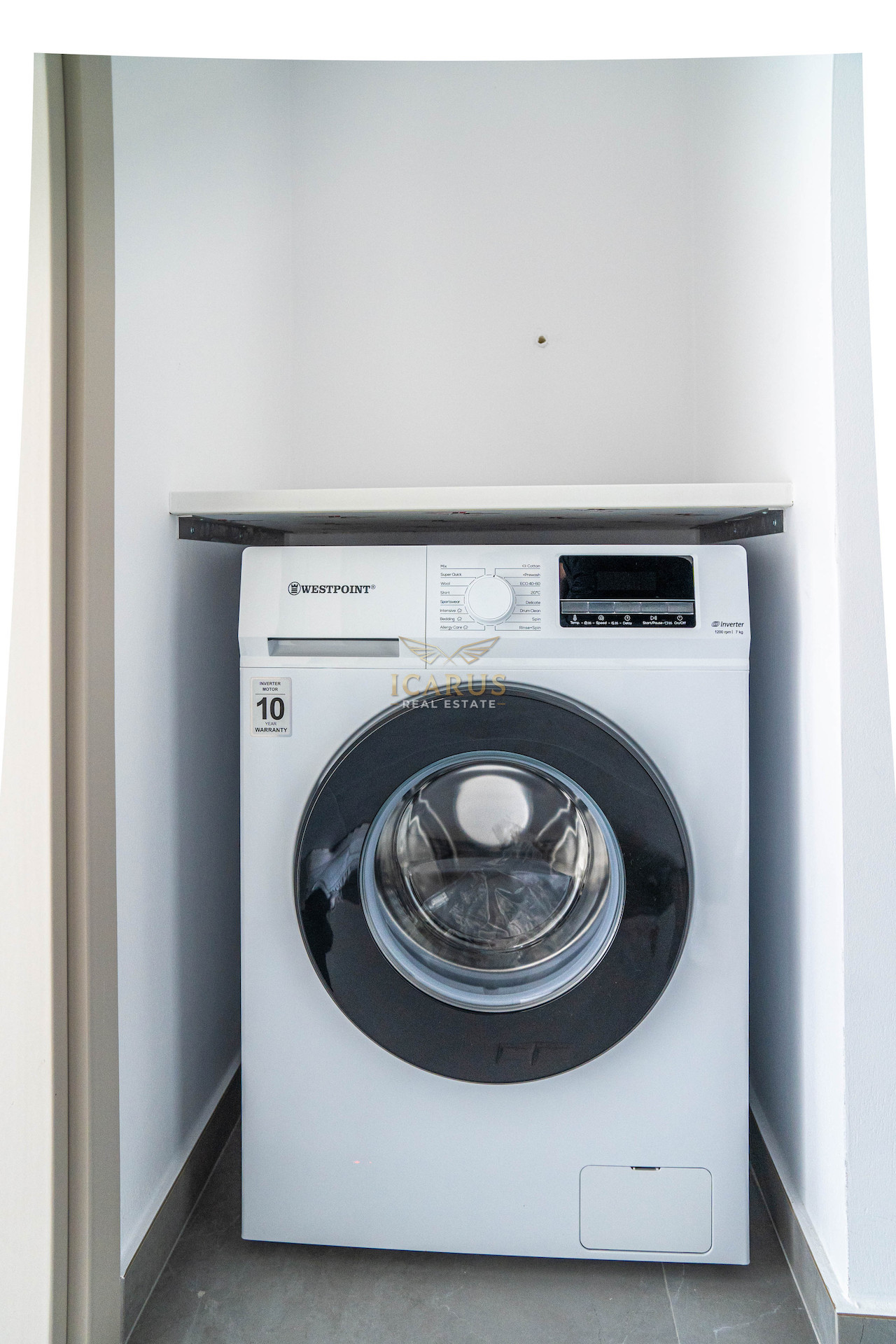 Step inside to discover a thoughtfully designed open-plan layout that seamlessly connects the modern kitchen and dining area with an inviting living space. Floor-to-ceiling windows flood the interiors with natural light, while the expansive balcony extends your living area outdoors—perfect for entertaining or relaxing.