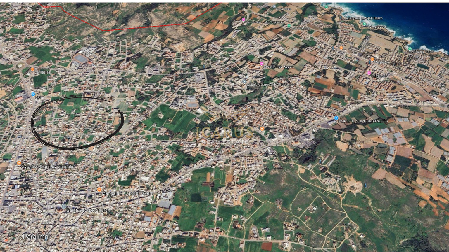 Commercial / Residential field for sale in the sought-after municipality of Paralimni, in the Famagusta district, ideally positioned along the main central road. The property enjoys excellent accessibility and is surrounded by a wide range of amenities and services, while the sandy beaches of the Kapparis area are just a short drive away.