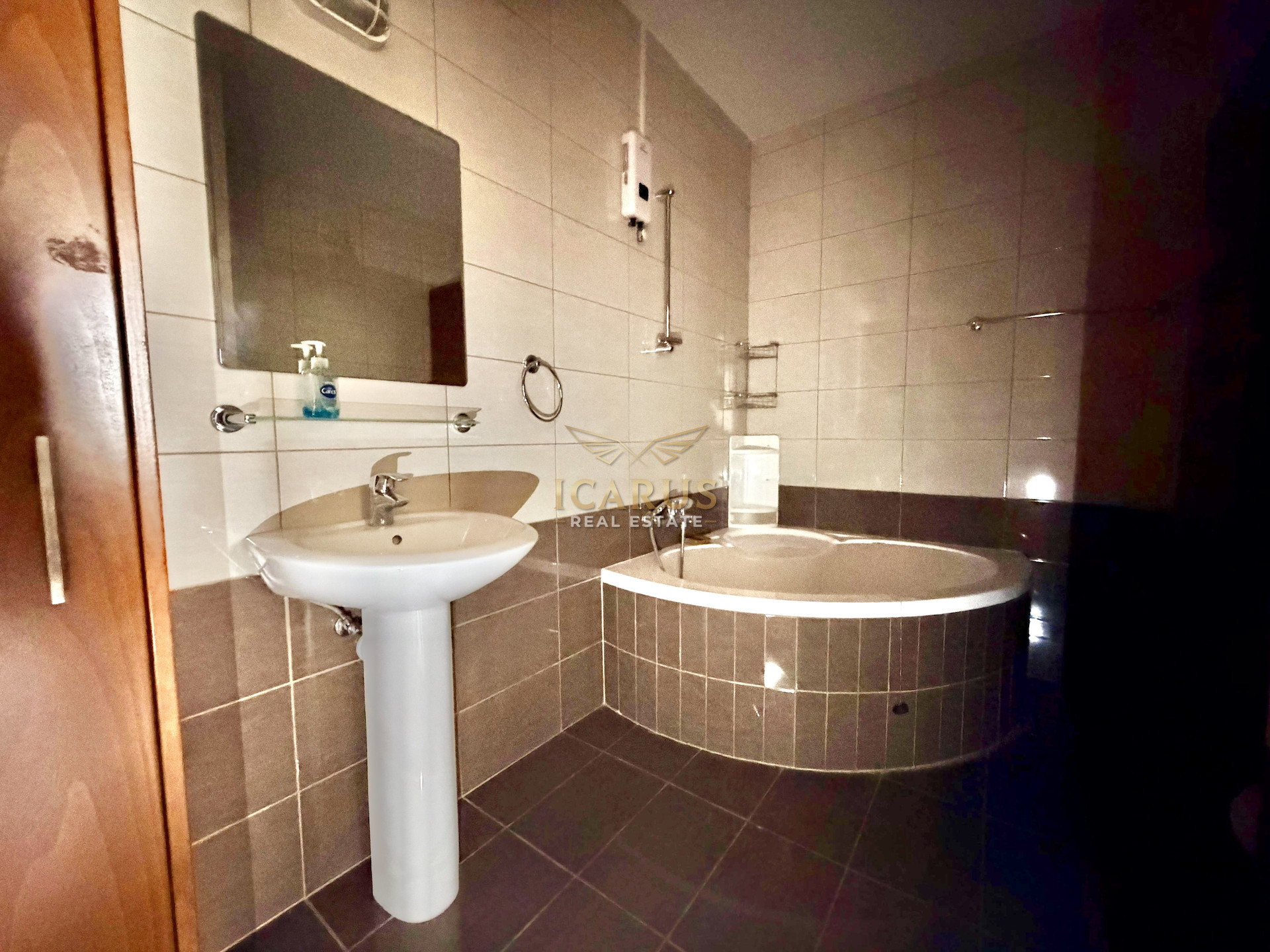 The apartment comprises two well-proportioned bedrooms, including a master bedroom with en-suite shower and toilet, while a separate main bathroom with bathtub serves the rest of the property.