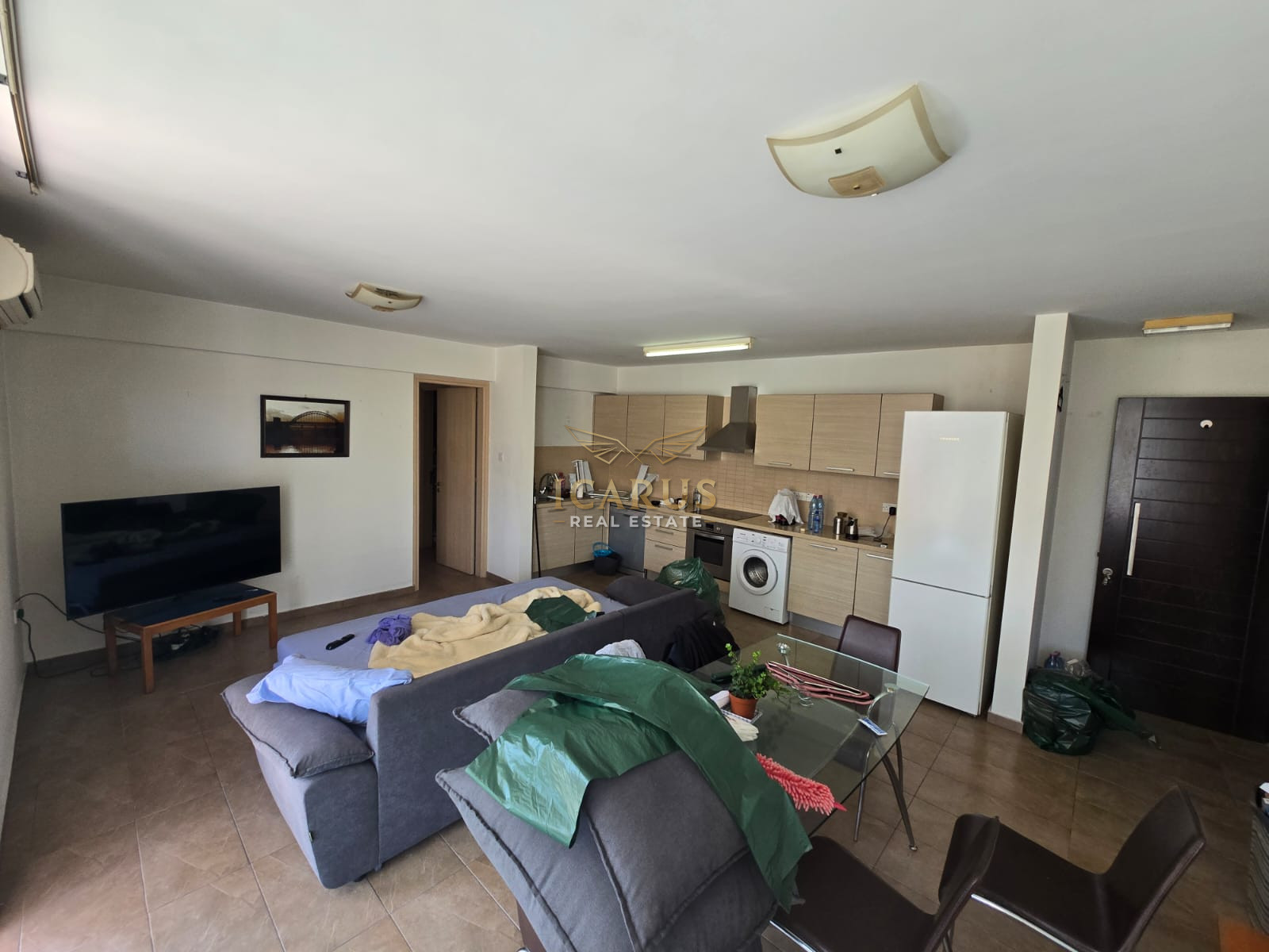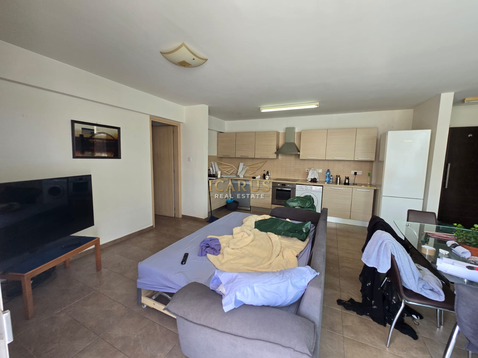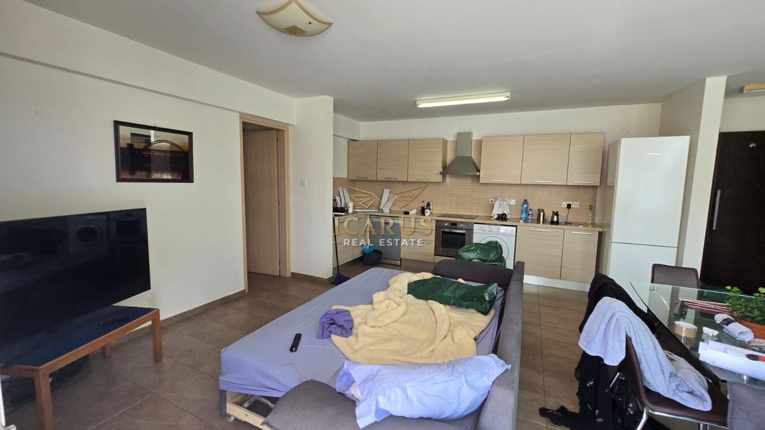 Situated on the first floor, the apartment welcomes you with a bright and airy open-plan layout that seamlessly combines the kitchen, dining, and living areas—perfect for both relaxing and entertaining. Two generously sized bedrooms provide comfort and privacy, complemented by a well-appointed bathroom.